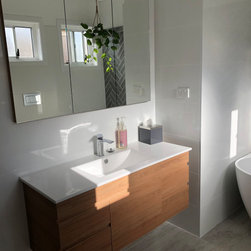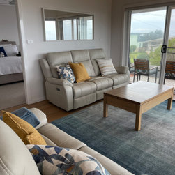 The clients purchased the house about 1 year ago. It's a 2-story home with downstairs a fully self contained 2 bedroom holiday accommodation, that will be renovated at a later stage. The first phase was to upgrade the second floor with new bathrooms, replace flooring, new kitchen and new furniture throughout. The new paint palette throughout the second floor transformed the space into a bright modern home on the beach.