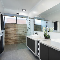 The Industrial Inspired Ensuite. The perfect mix of industrial raw styling with modern sophistication - Michael Conroy