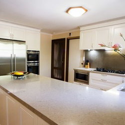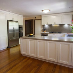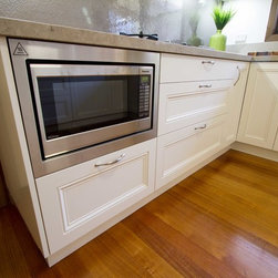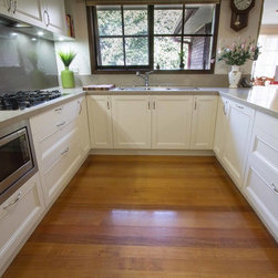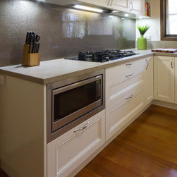 Our designer John Crooks, has created an elegant and timeless kitchen for our clients in Vermont South. This new kitchen is sensitive to the style of the house and looks like it has always been there. The layout and practical elements work perfectly for the client’s needs. They are particularly loving the extra hidden storage on the outside of the breakfast bar (6 cabinets) and their steam oven!