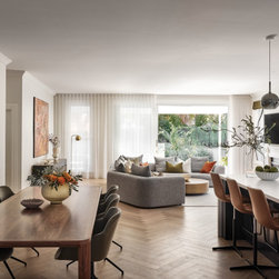 A refined use of colour and texture formed the basis for the transformation of this stunning Upper North Shore residence. The brief was to create a home that referenced our client’s experiences abroad, embodying a sense of high-end hotel luxury and comfort. The original part of the house blends seamlessly with the new addition, through a contemporary interpretation of materials and furnishings throughout. The affectionately named ‘Snug’ sits in the middle of the home, evoking the charisma of an old school gentleman’s club, while the dining and family room at the rear function beautifully as a place for family to relax and connect with one another. The master bedroom and dressing room have become places to retreat and unwind, like stepping into another world.