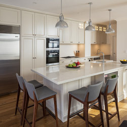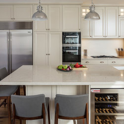 Warm, cream kitchen with big island - laundry, study nook, fireplace and more