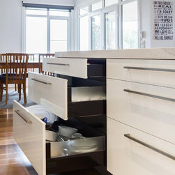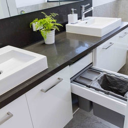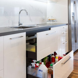 Yvonne and her family took the big leap and built their dream home in Warrandyte. As Yvonne knows the industry well, she had a fun time choosing exactly what she wanted and what would work best for her family and lifestyle needs. A sleek, modern kitchen, butler’s pantry, bathrooms and laundry was achieved with every inch jam packed with practical internal solutions.