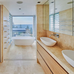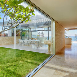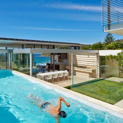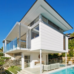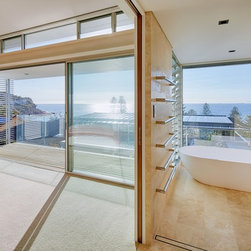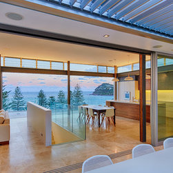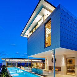 This luxurious holiday house was completed at the end of 2012. It has been planned over three levels, stepping back up the hill-side and following the contours of the site, so that all rooms enjoy the spectacular views and see breezes from the east – over the Norfolk pines, beach and Pacific Ocean beyond.