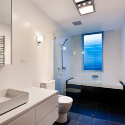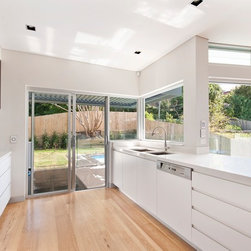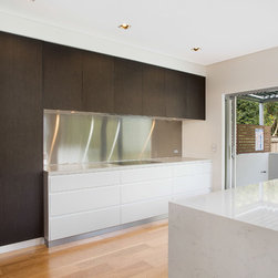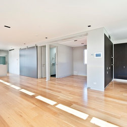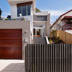 The brief for the Wilkins Residence included linking the upper level living areas all the way from the back garden through to the front of the building on a long and relatively narrow block. We developed a planning arrangement whereby the service zones were located to the east of the site and the living areas wrapped around these through a series of intersecting bands. The size and location of the project was not without issues from a Council point of view, but the approved design speaks for itself.