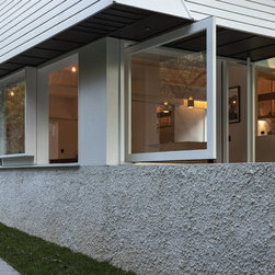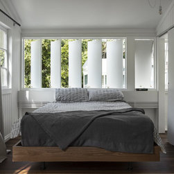 The existing street facing verandah is enclosed and reoccupied by a stair allowing movement through the building to occur at the street edge. The upper level houses bedrooms, a shared bathroom, and spaces for retreat elevated over the backyard.