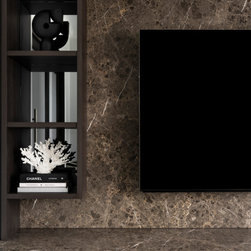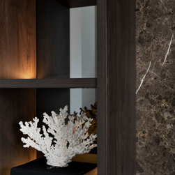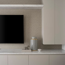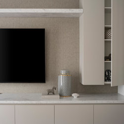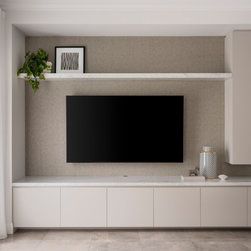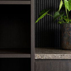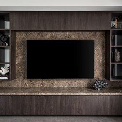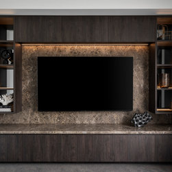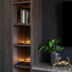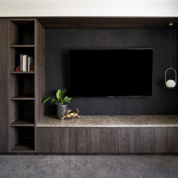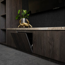 We designed specialised entertainment feature walls for three separate areas of this classic home, with a thoughtful combination of fine materials.