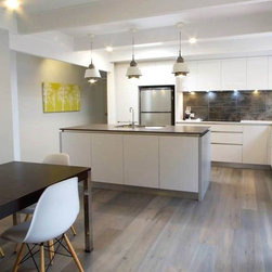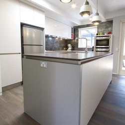 Our clients, Mike and Hans, clearly needed a new kitchen. They wanted something sophisticated and modern to suit their lifestyle and entertainment needs. Our clever designer, Suzzanne, was able to see past the awkward space and create something perfect for the needs of the clients and their home.