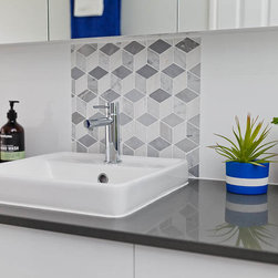 It was time to update our 10 years old bathroom and we wanted something simple yet striking! The use of greys and whites and the addition of the marble mosaic did just that and is the perfect backdrop to add any pop of colour.