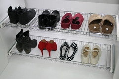 If space is tight, storing all your shoes in the wardrobe may not be possible. If you can fit them in, however, aim to stash them on shelves at mid-height so you can see them.