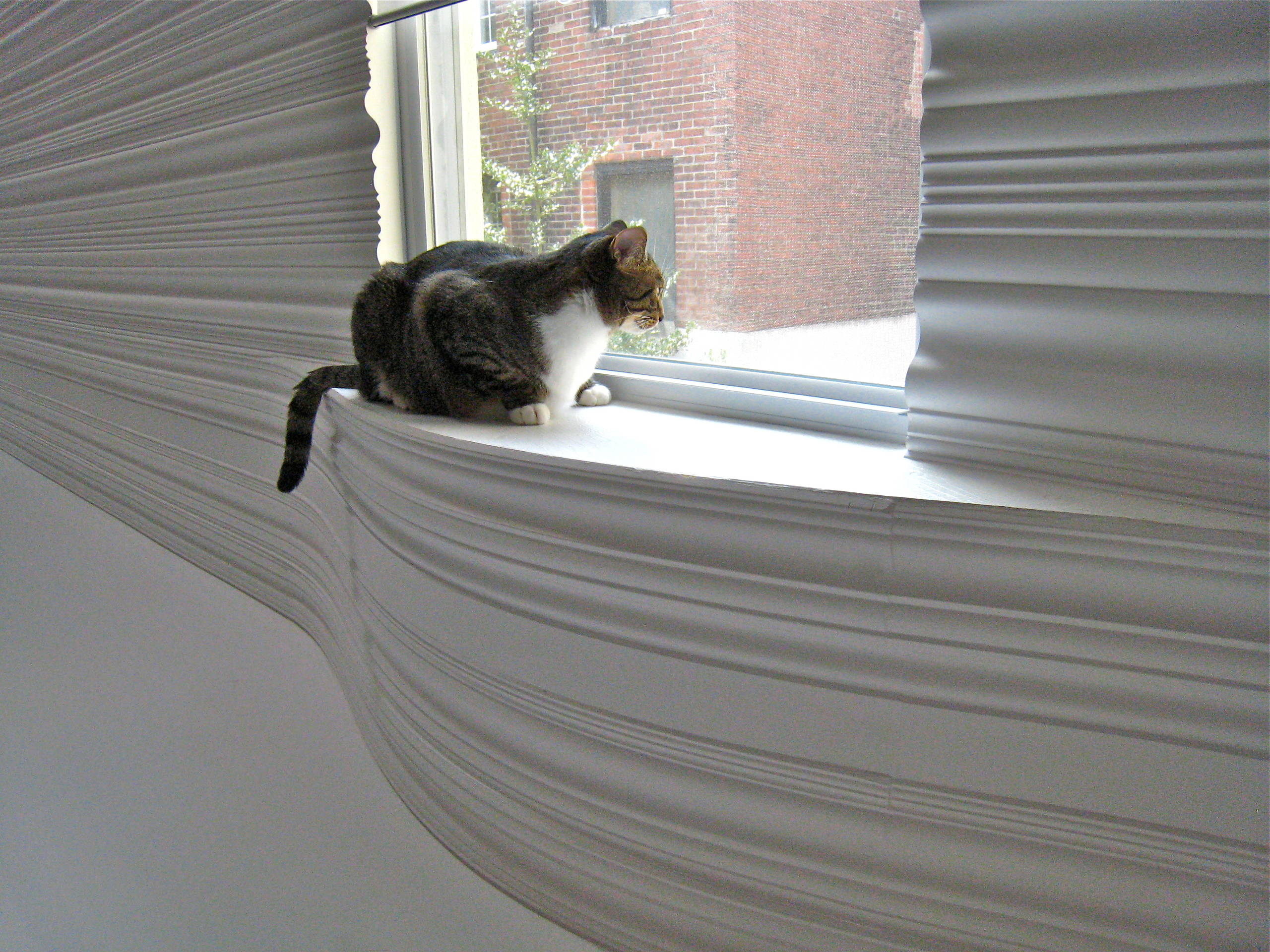 Everyone knows that cats despise being bathed, dunked or otherwise soaked. But aside from that, they’re actually quite fond of water. Make life a little more interesting for your cat by providing a number of watering holes around the house. They could be as simple as a few bowls or glasses of water or as elaborate as a wall fountain positioned low, as shown here. Large stoneware bowls on stands filled with cat-safe water plants can also make a beautiful and cat-approved watering spot. Of course, cats seem to revel in drinking out of things other than their water dish, so don’t be surprised to find kitty dipping his nose into your water glass or a vase of flowers despite the bounty of options left for him.
