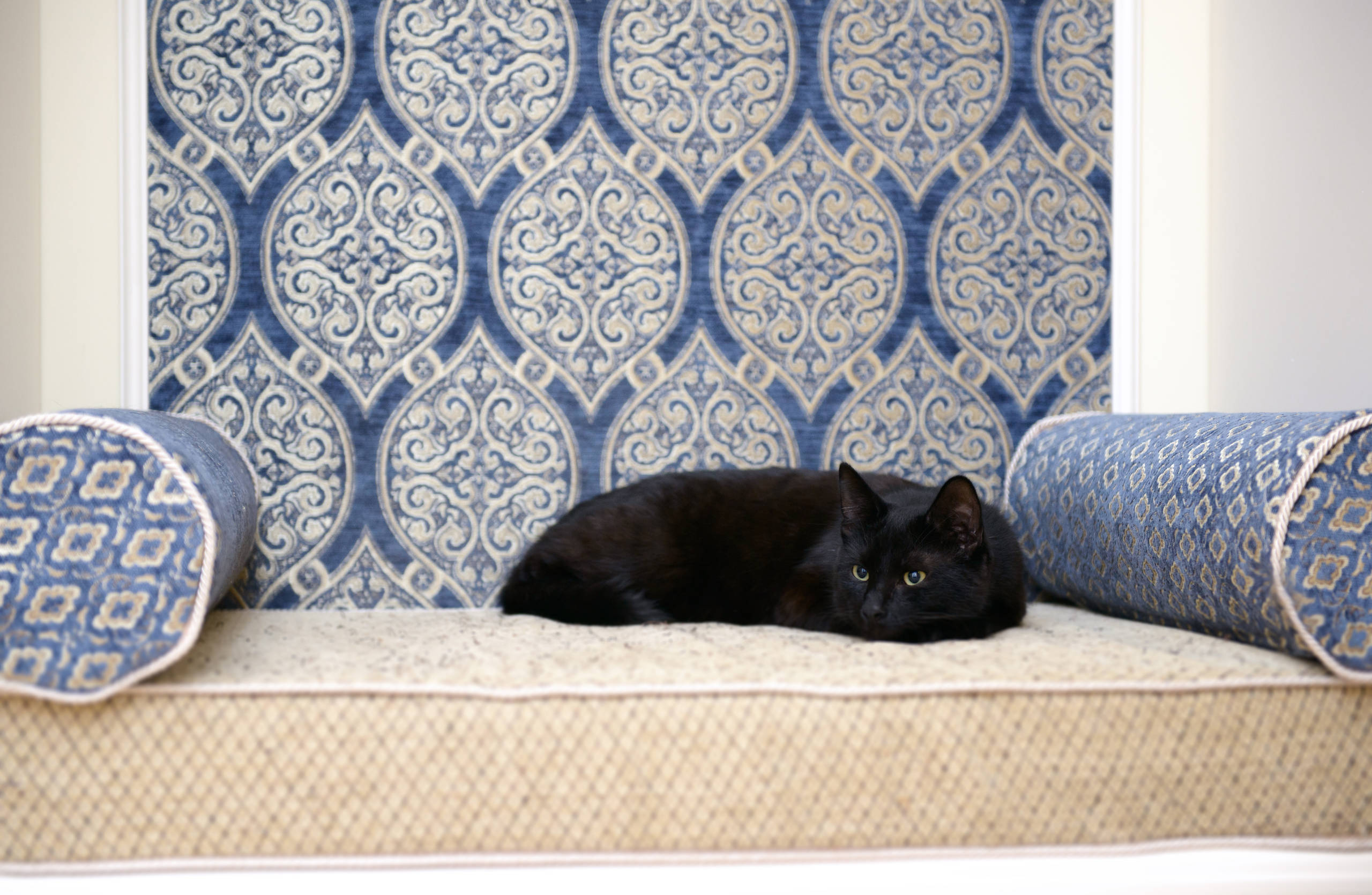 Each cat has its favourite scratching material, so you may need to test out a few scratchers before finding the perfect one. Corrugated cardboard and natural-fibre rope or rug material seem to be popular with the feline set. Incorporating a scratching material with a climbing structure is a smart idea, especially if you can find one that fits with your decor, as seen here. If furniture scratching is a problem, try covering kitty’s favourite piece with a throw when you’re not home.
