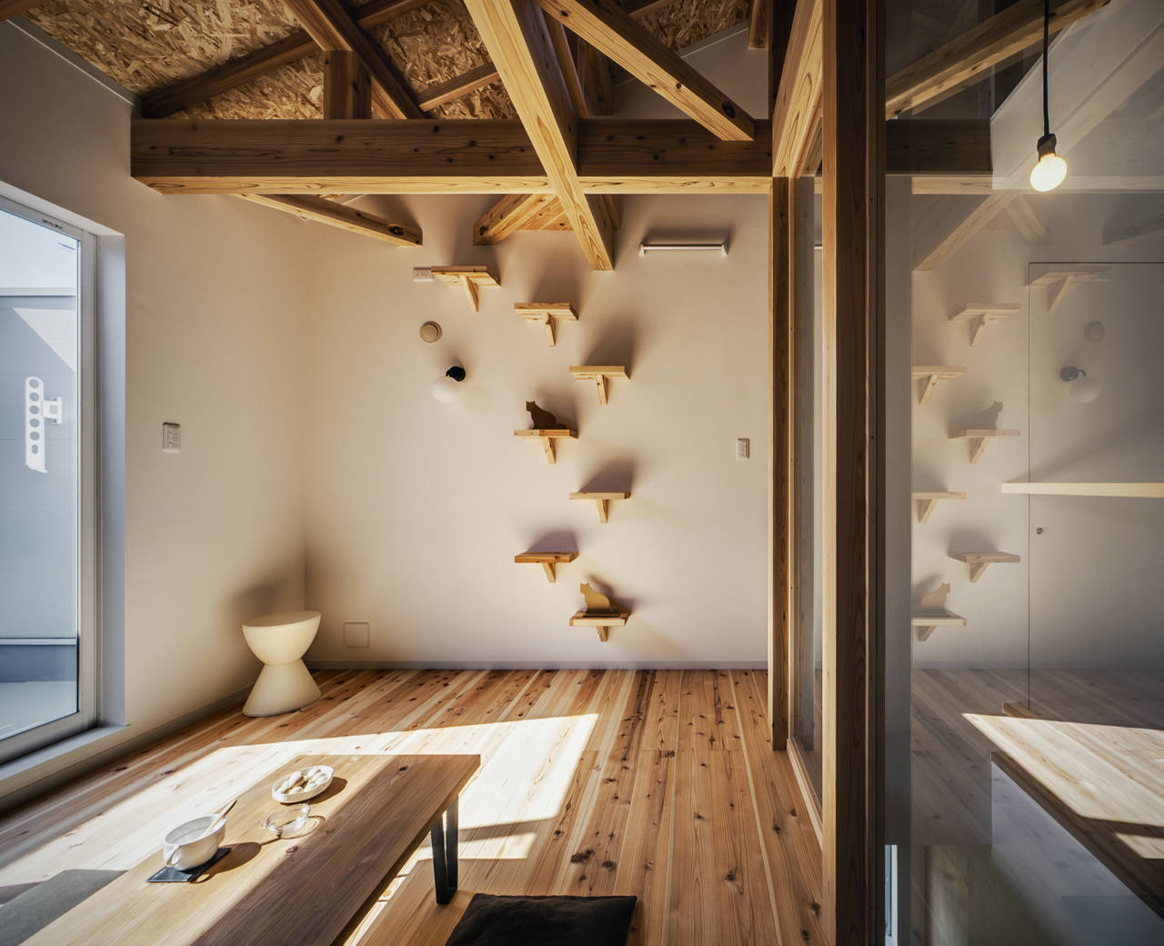 Indoor cats need a chance to romp and use those springy muscles to stay fit and healthy. Consider adding a wall-mounted structure to your home where kitty can climb, jump and perch. There are many great DIY projects out there to try, like the series of perches and rustic-modern cat tree shown here.
