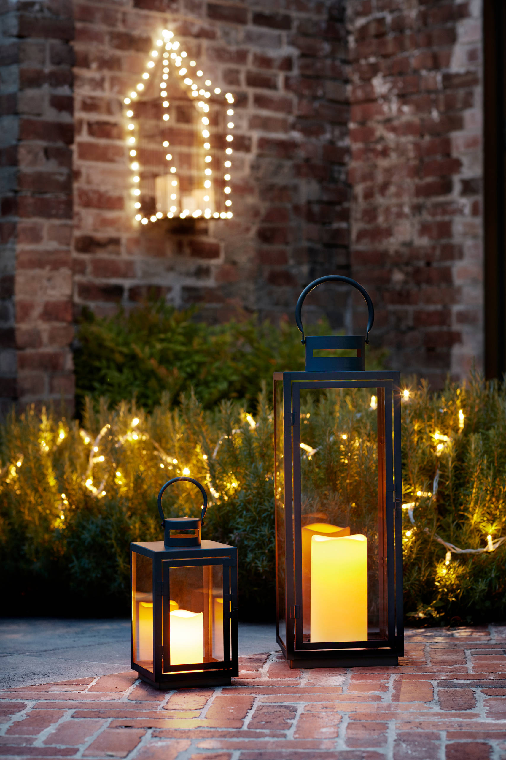 You may not have trees or shrubs to wrap with fairy lights and line your entrance, but you can light up potted plants or artfully arranged branches instead.