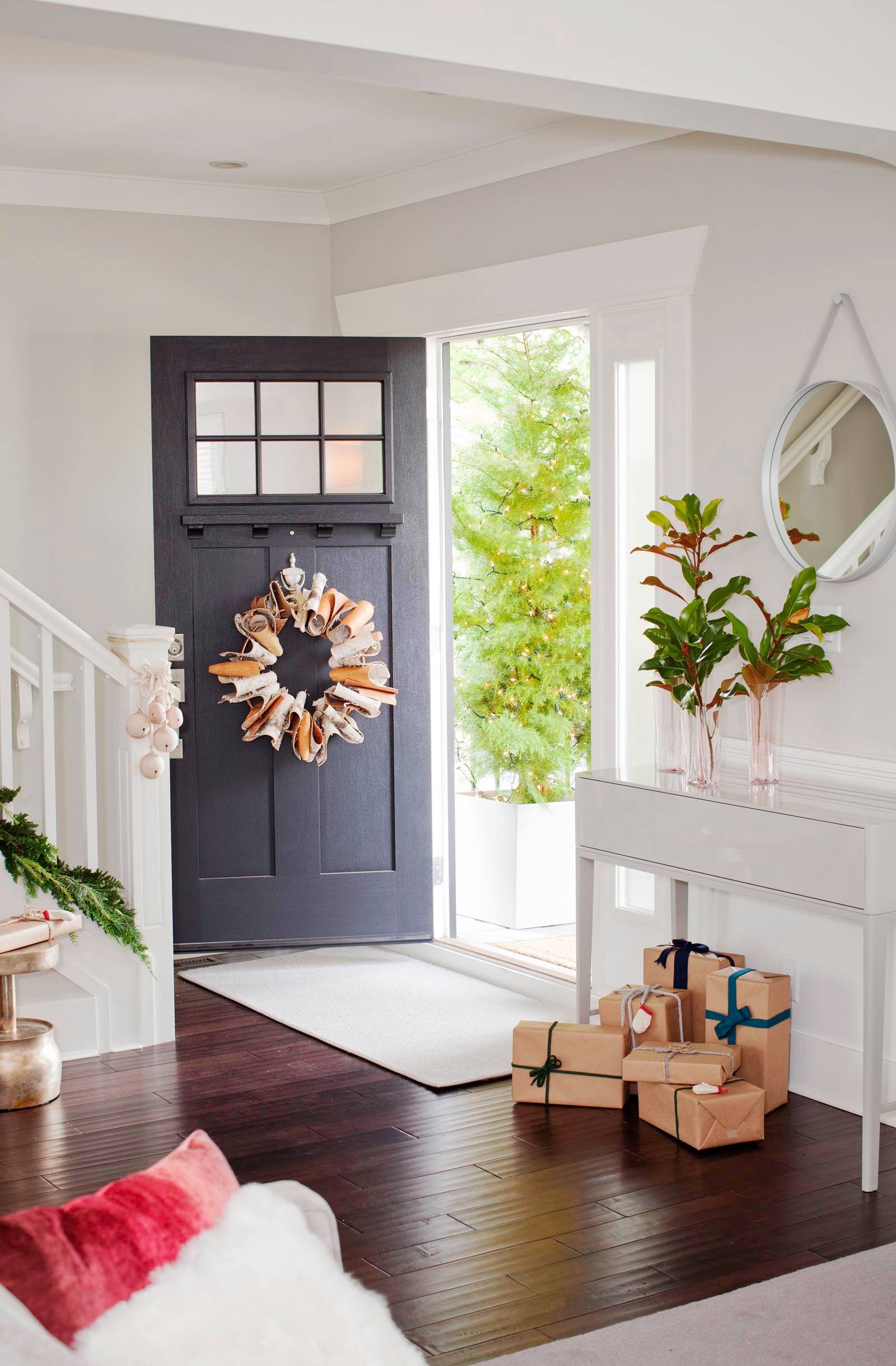 A front porch or entrance done up with festive garlands and strings of lights can look lavishly festive without being overwhelming.