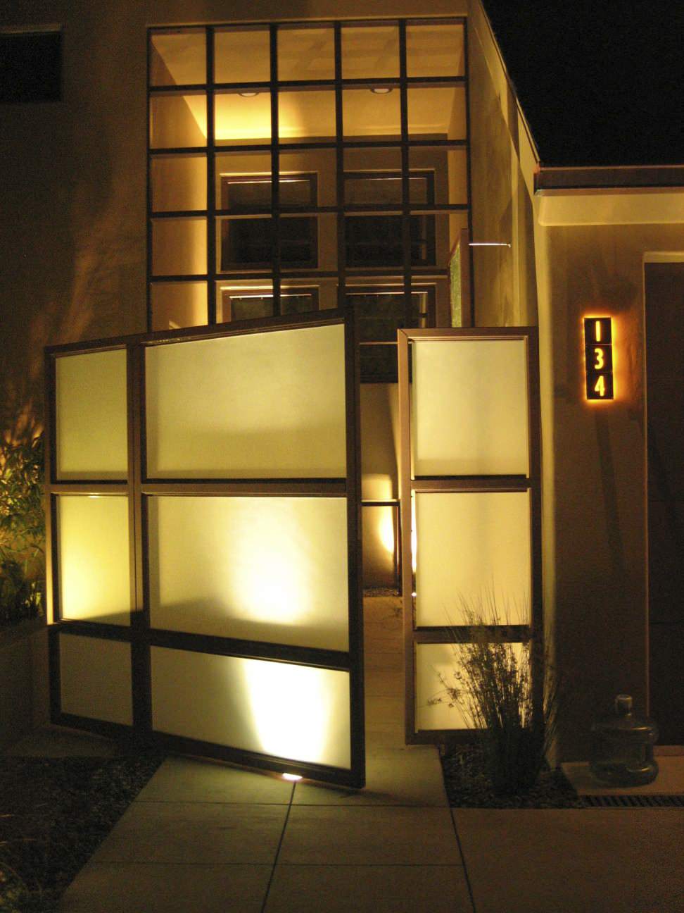 The mood and ambience in the entrance to this home is created by diffusing light behind translucent panelled gates. Again, on arrival, a sense of anticipation is created. Ensure that the placement of the light source is well hidden so that you can’t see the light fitting, but only the glow of its light.