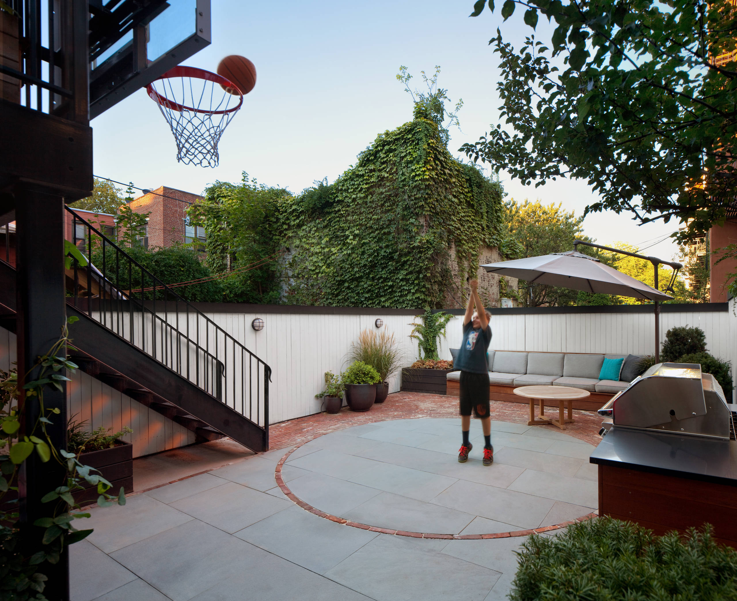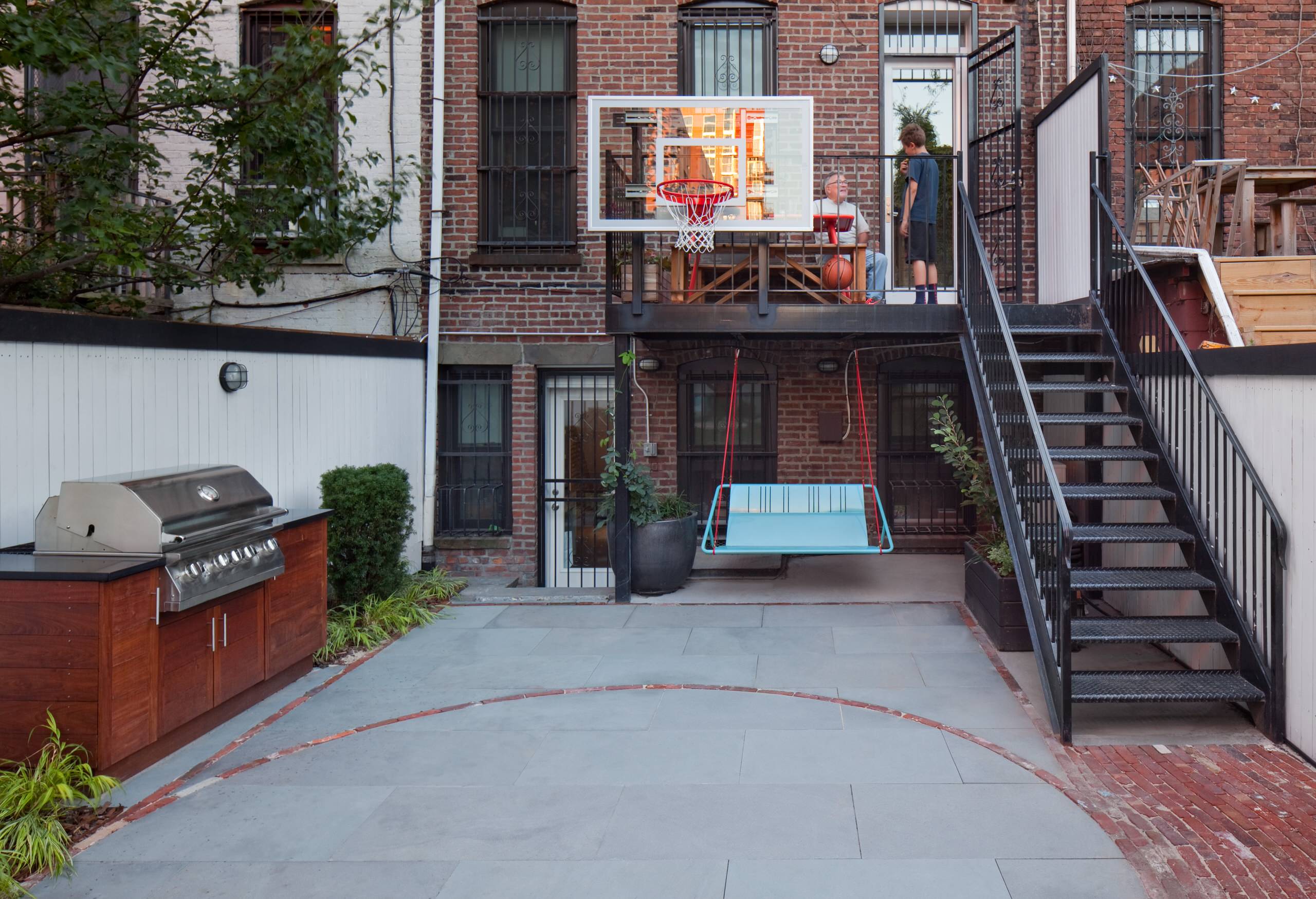 5. A second-storey deck becomes a basketball play area