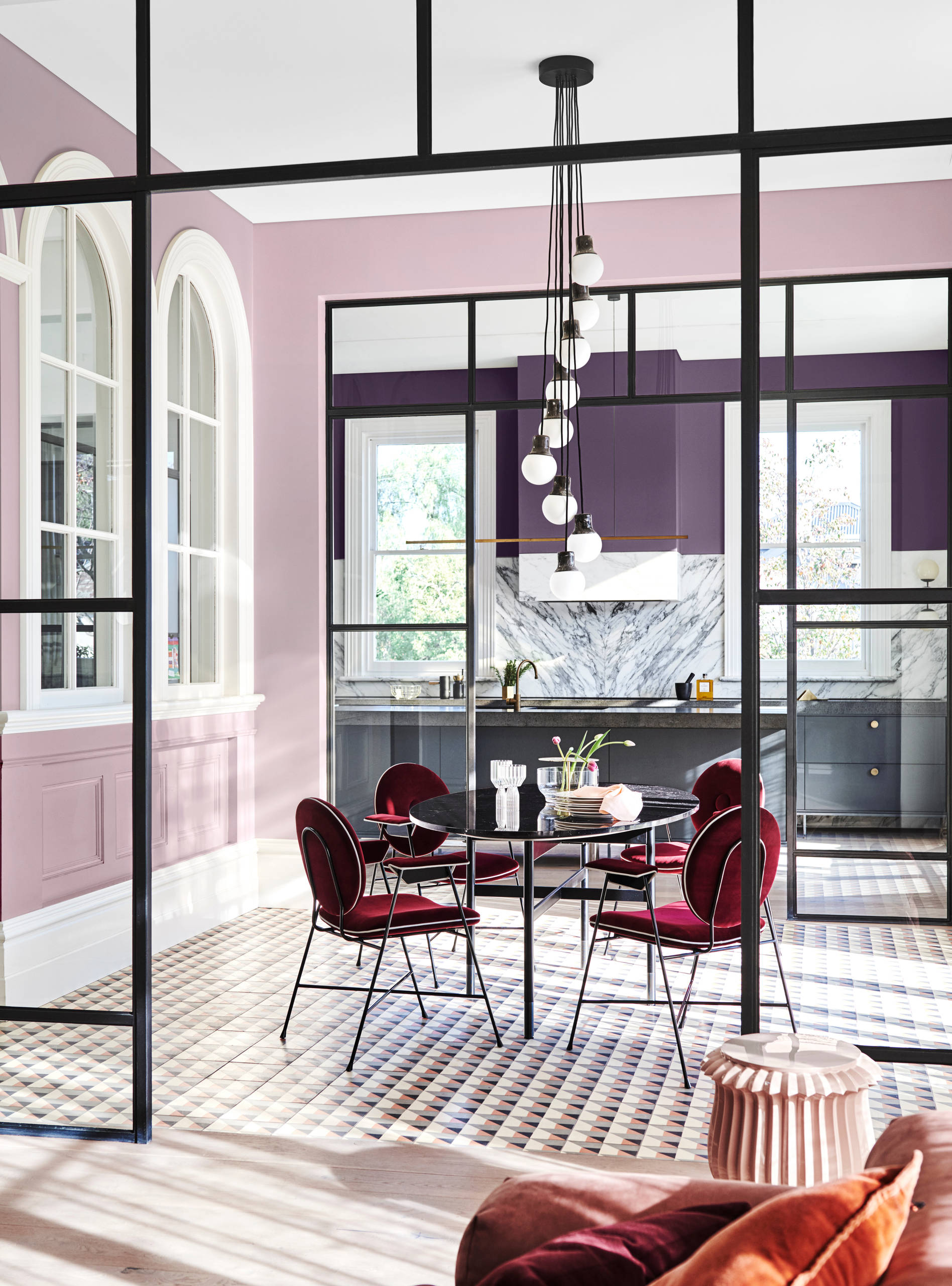 Where to use these colours: Kitchens, bathrooms, and open-plan dining rooms.