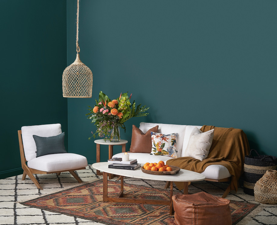 Taubmans chose Night Watch – a deep, sophisticated green – as their colour of the year for 2019. It’s a sumptuous shade that pairs beautifully with a variety of different tones, including peach, rust and taupe, says Taubmans’ colour consultant, Grace Garrett.