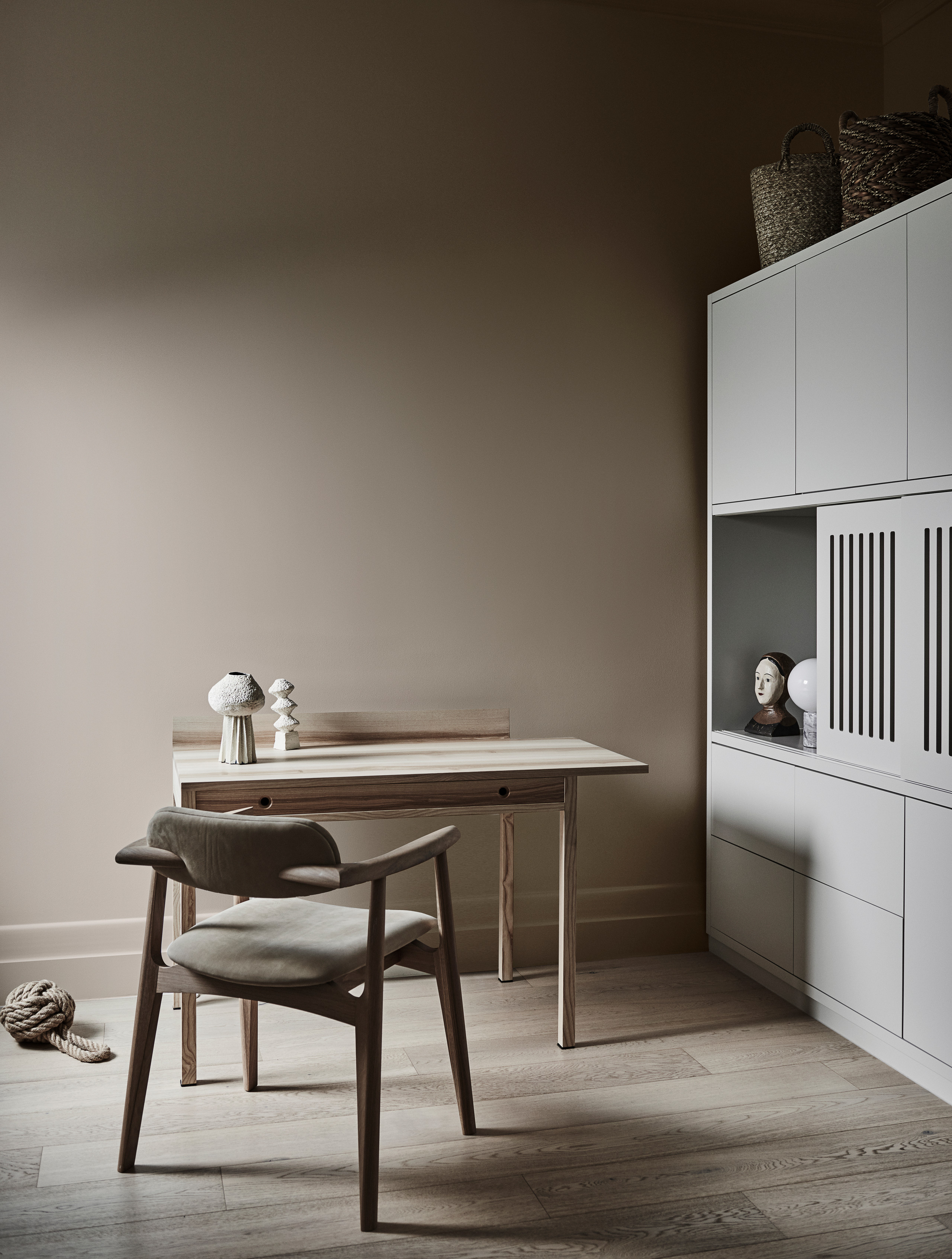 Use accents of stronger brown (such as Dulux’s Knot) and coral to create a moody and sophisticated feel in a bedroom.