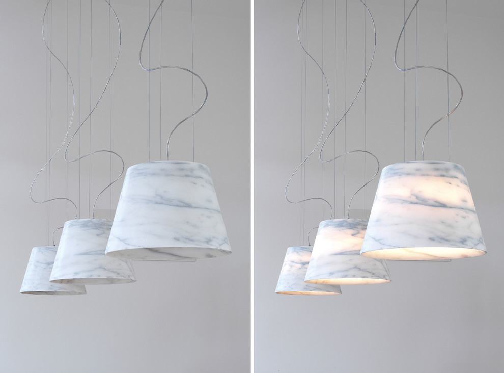 The Apuleio bianco Carrara caved marble lamp, designed by Michele De Lucchi and Philippe Nigro for Pibamarmi.