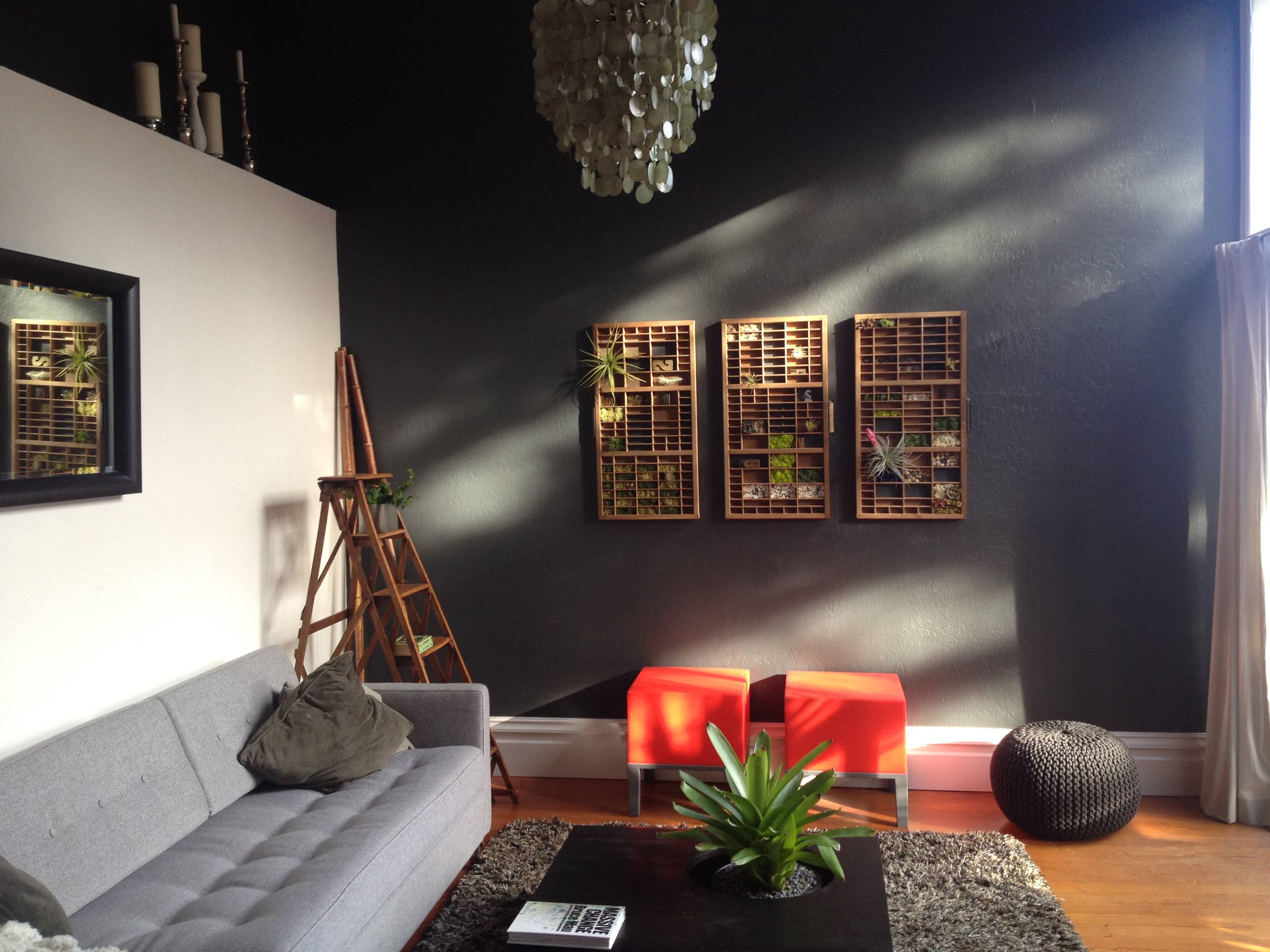 Not only restricted to the wall, a collection of printer trays have been connected to create a sideboard for this home.