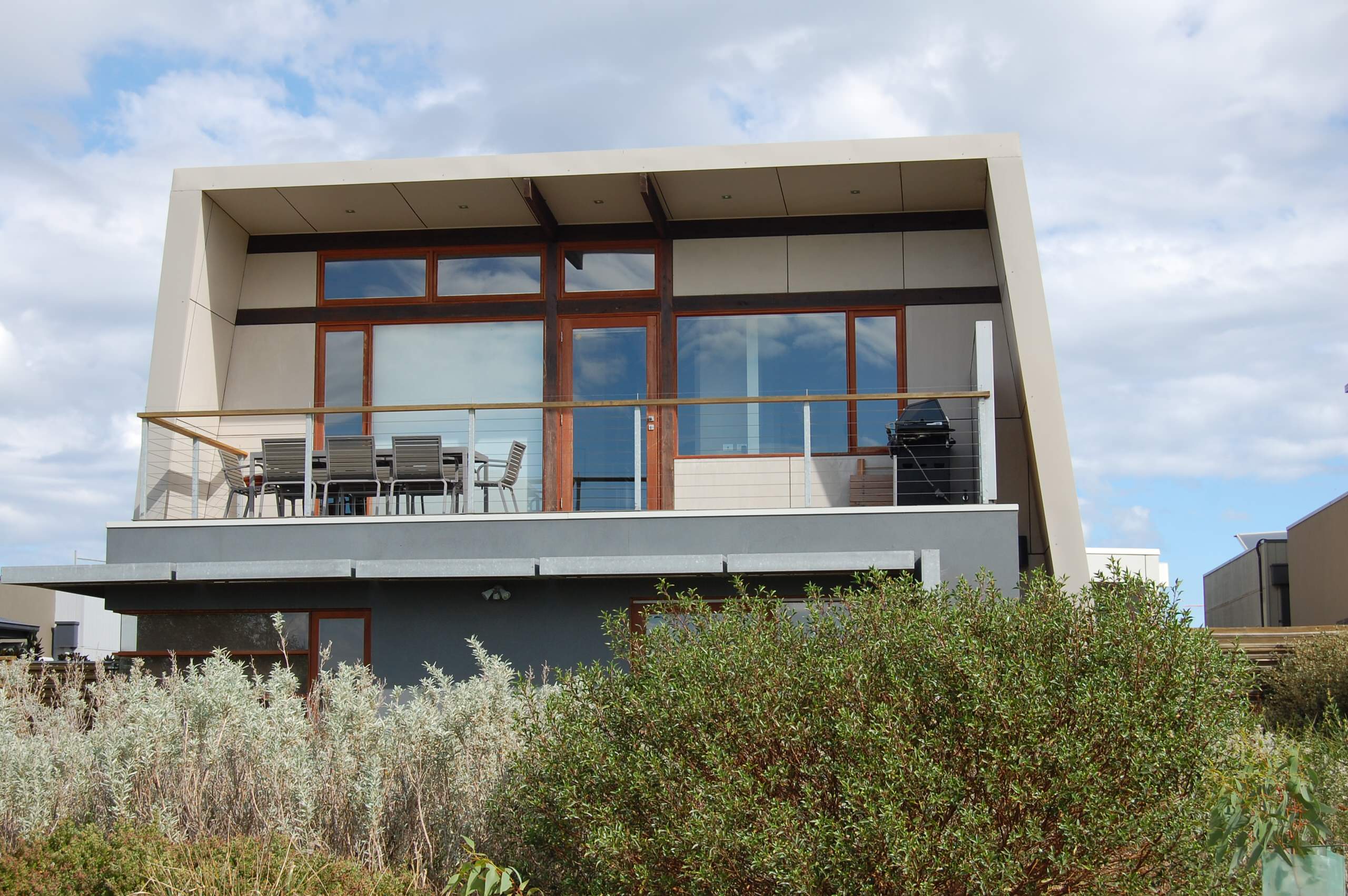 Careful consideration should be given to both the size and orientation of all windows for the particular climate zone you’re in. The windows featured in this living room are double-glazed uPVC, which make the home more energy-efficient and are a great choice in a harsh coastal environment such as Lorne, Victoria, where this house is situated.