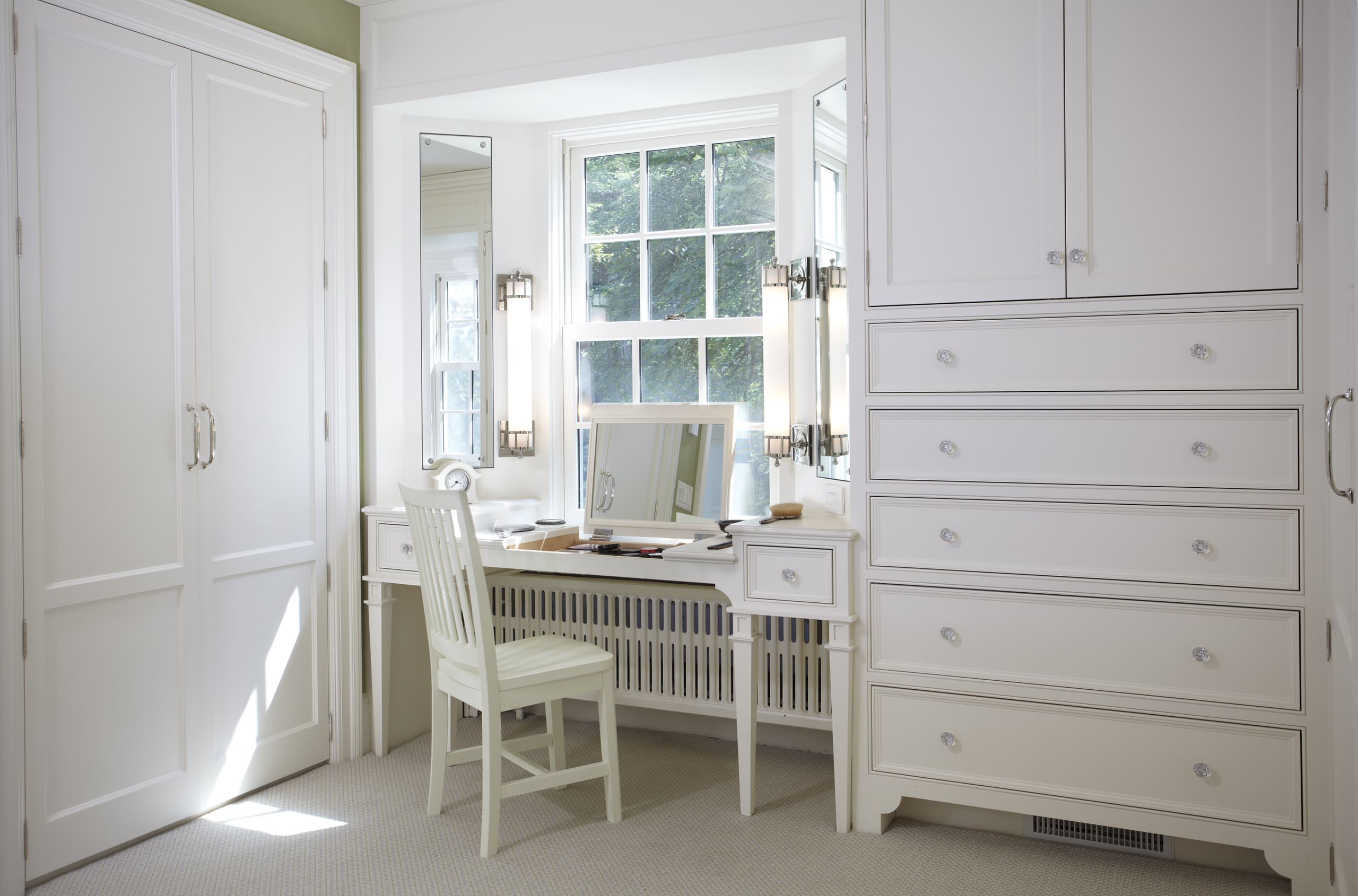If you happen to have a walk-in wardrobe with space for a make-up corner, it makes for a lovely secluded spot. You’ll also have handy access to all your clothes to allow you to match them to your make-up. If you can’t set up in a walk-in wardrobe, try to find another spot that’s not going to have people passing by frequently.