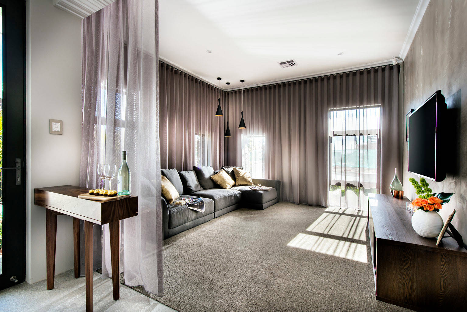 From living rooms to bedrooms, whether you pair them with blockouts or parade them on their own, sheers are the high-fashion models of window treatments; beautiful, versatile and inspirational. Cascading sheer curtains out of a bulkhead or simple pelmet gives the illusion of light and space, while still providing all-important privacy.