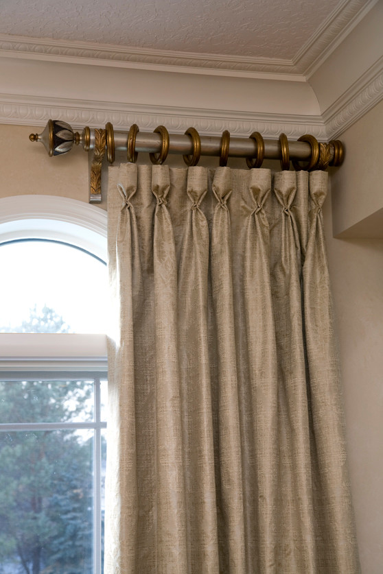 These tidy and consistent folds at the top of the curtain resemble the size of a pencil, hence the name. These curtains are hung with drapery hooks attached to the back of the curtains where they can’t be seen, and then hooked onto a rod system.
