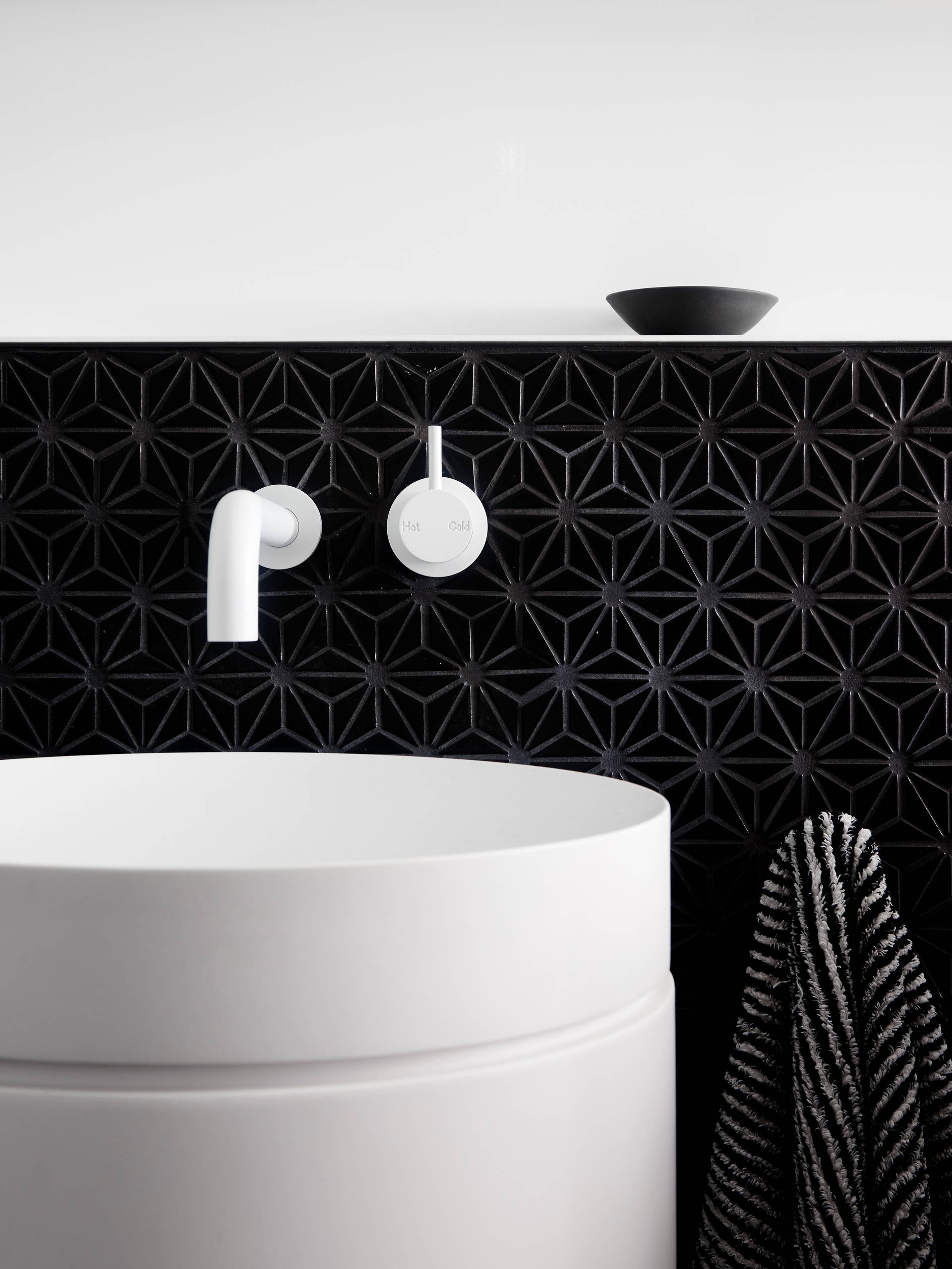 When teamed against a black splashback, the contrast makes white tapware pop in any space.