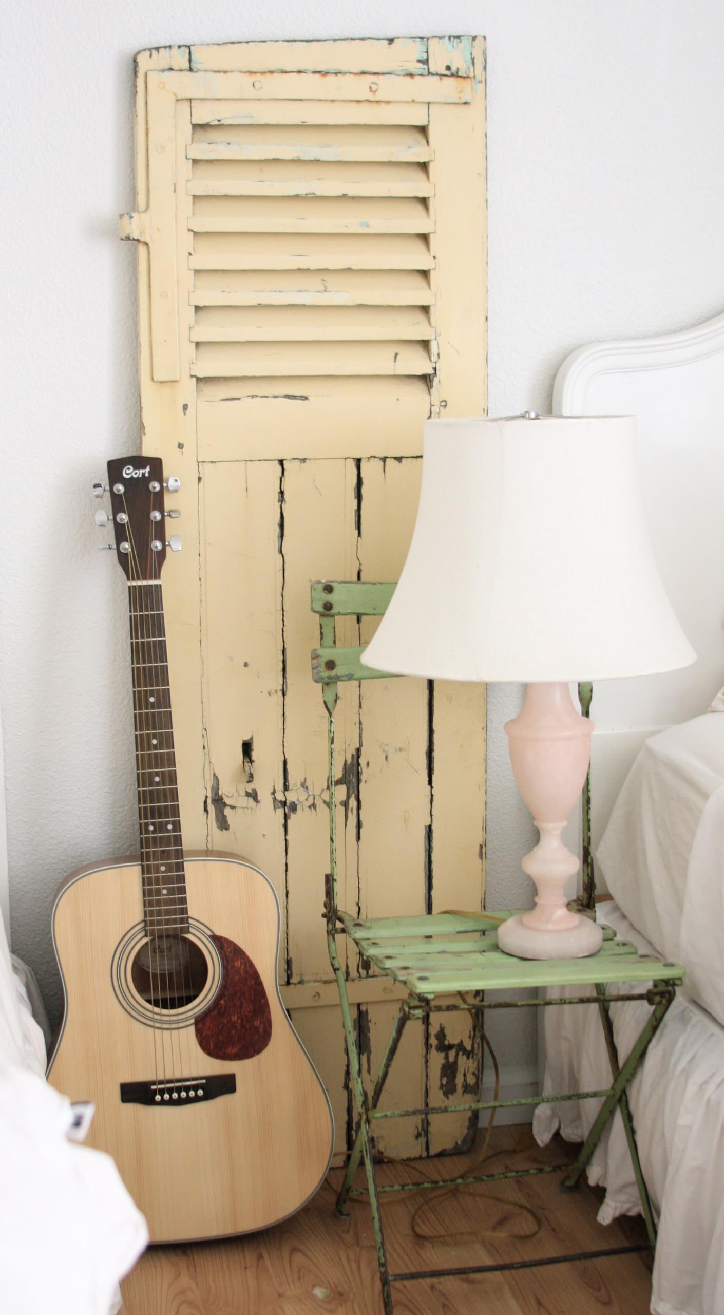 Folding wooden chairs create an excellent bedside table and can double as seating if needed. Because they’re usually compact, folding chairs are especially useful in small bedrooms. The light green chair is a charming addition to this sweet bedroom. Not happy with the colour of your existing chair? Milk or chalk paint allows for an easy colour change in easygoing pastoral hues.