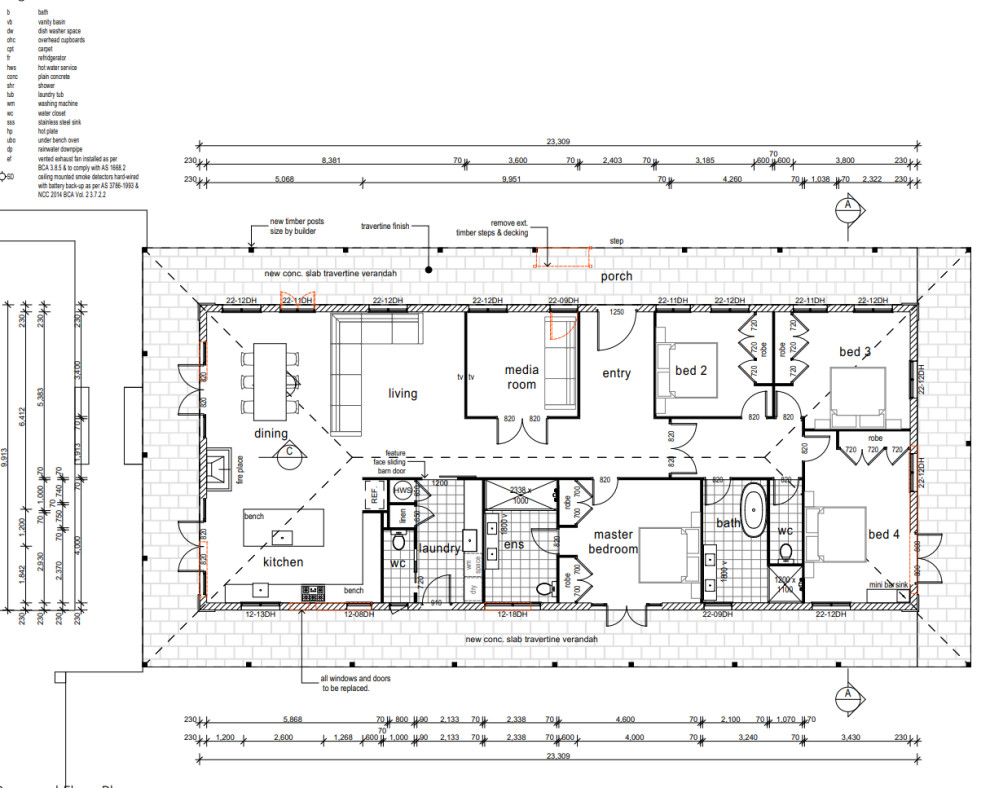Building designer: Bianca Gemmill at BCG Building Design for the new buildings and garage conversion. All plans designed by Dirnbek were submitted to Gemmill for drafting and to prepare for council approvals.