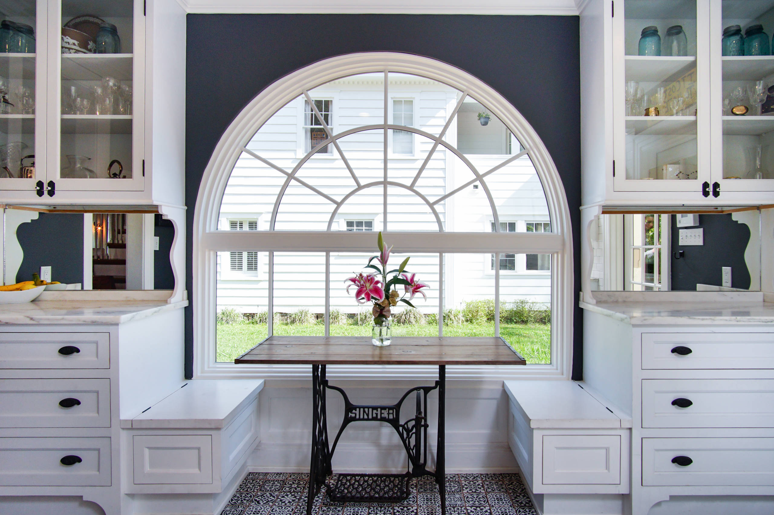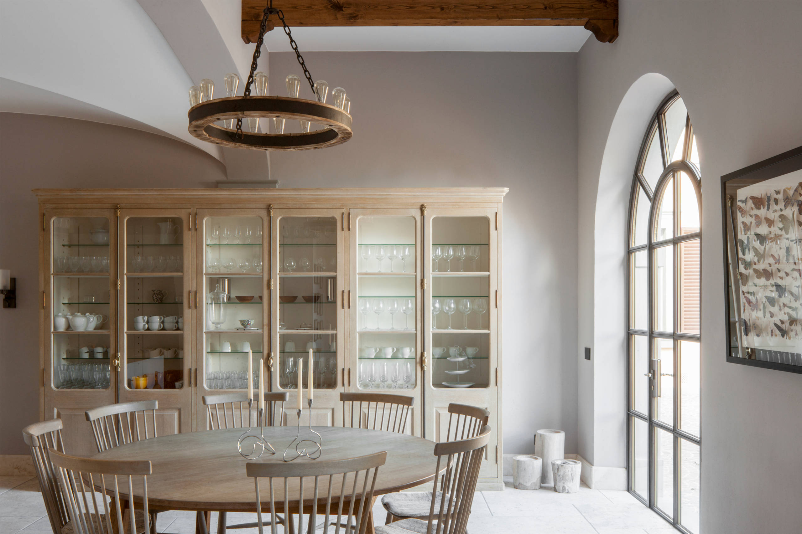 Features: Arched windows, ladder-back chairs and a pendant light that allude to past times.
