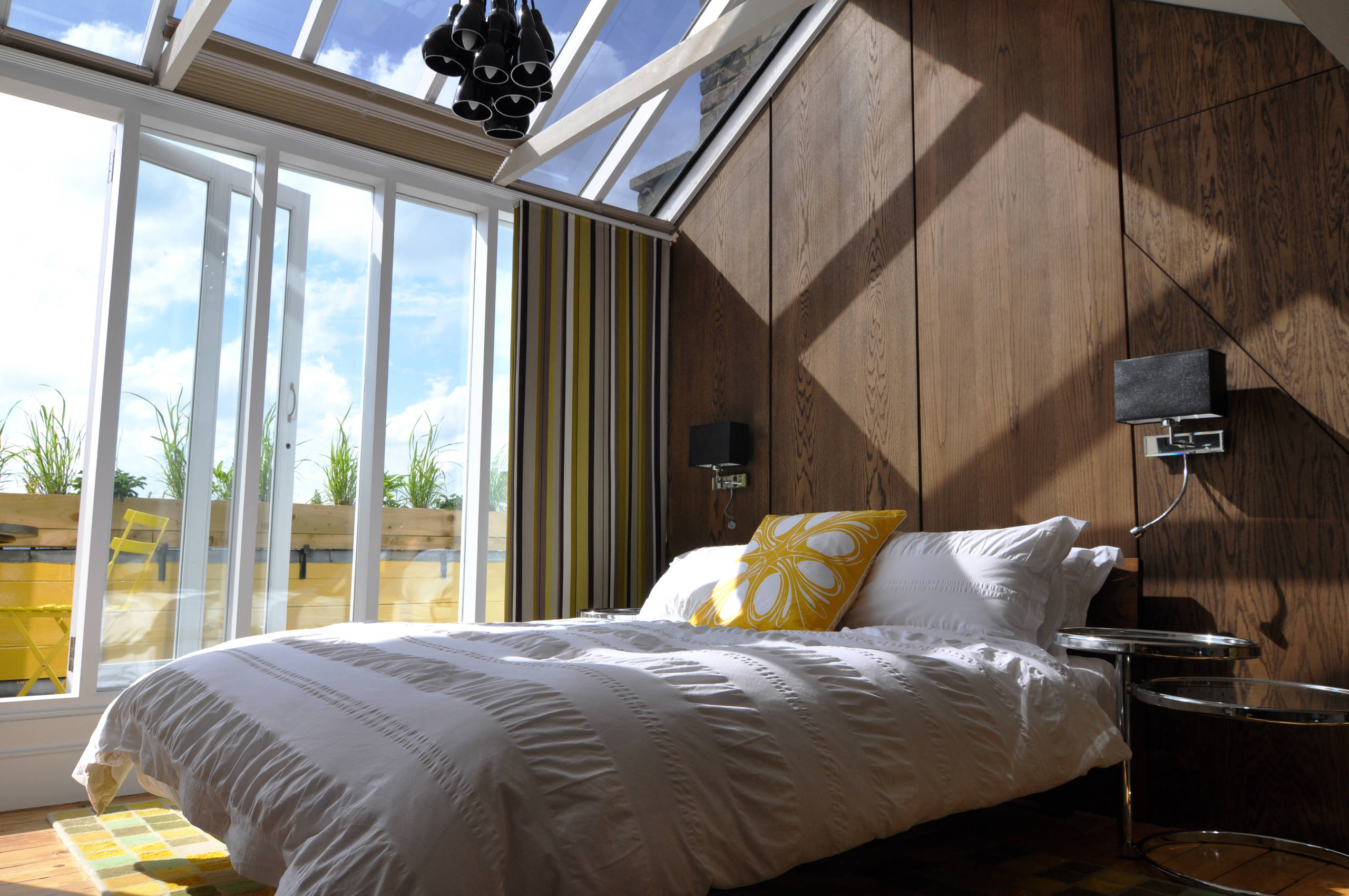 If you can’t choose whether the best way to relax is a long soak in a warm bubble bath, or a leisurely Sunday sleep in, I say don’t choose! Both bed and bath are at your beck and call in this unique bedroom, and the view is hard to beat.