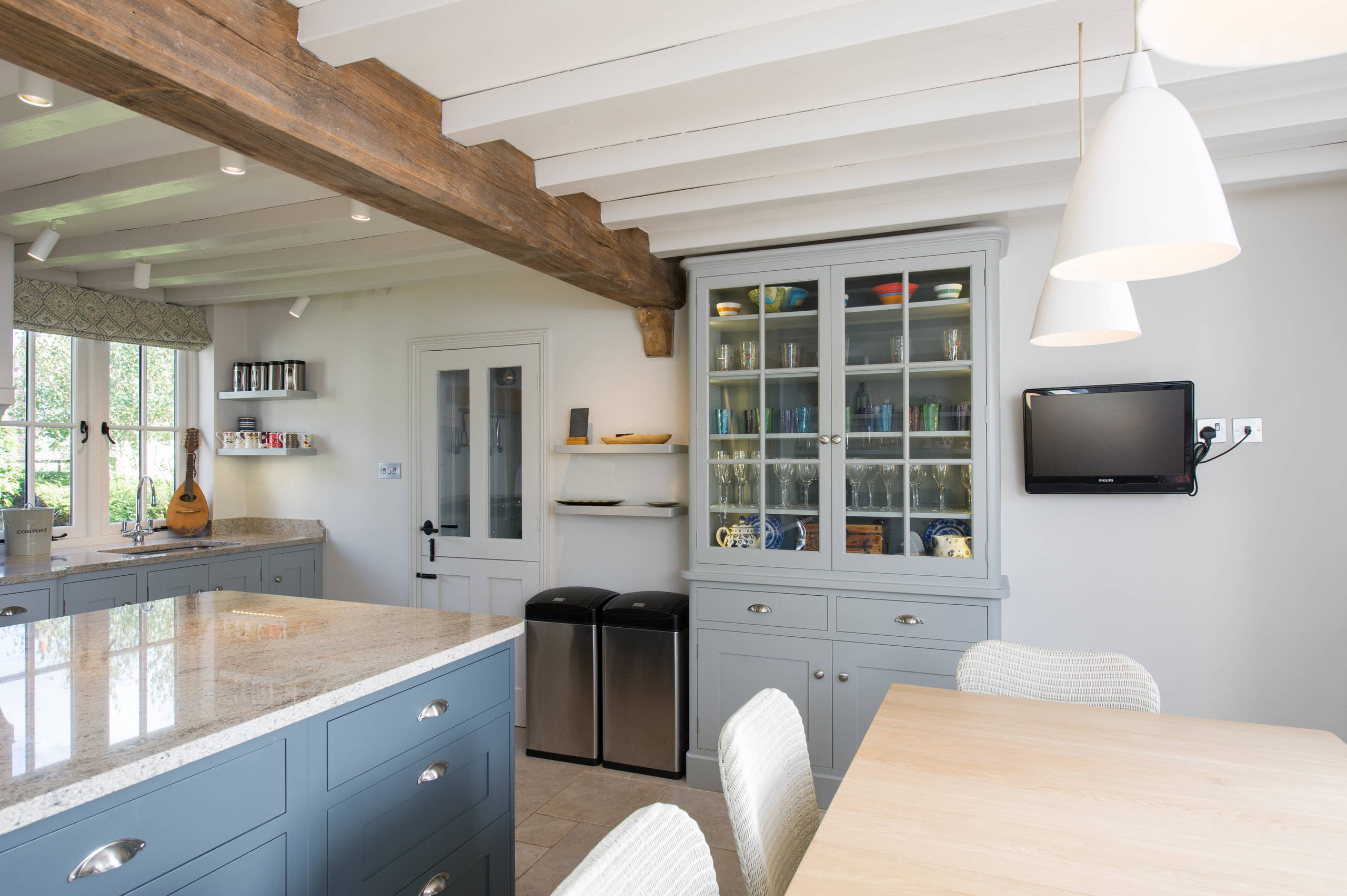 A clever storage unit like this one will hide gadgets away when they’re not in use. Make sure you have enough sockets to charge your gadgets while they’re hidden from view.