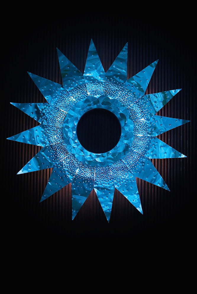 And better still, it lights up at night from behind by using battery or USB operated lights. The light glows through the small holes, which I made using a hammer and nail. All of your materials should cost less than $25.
