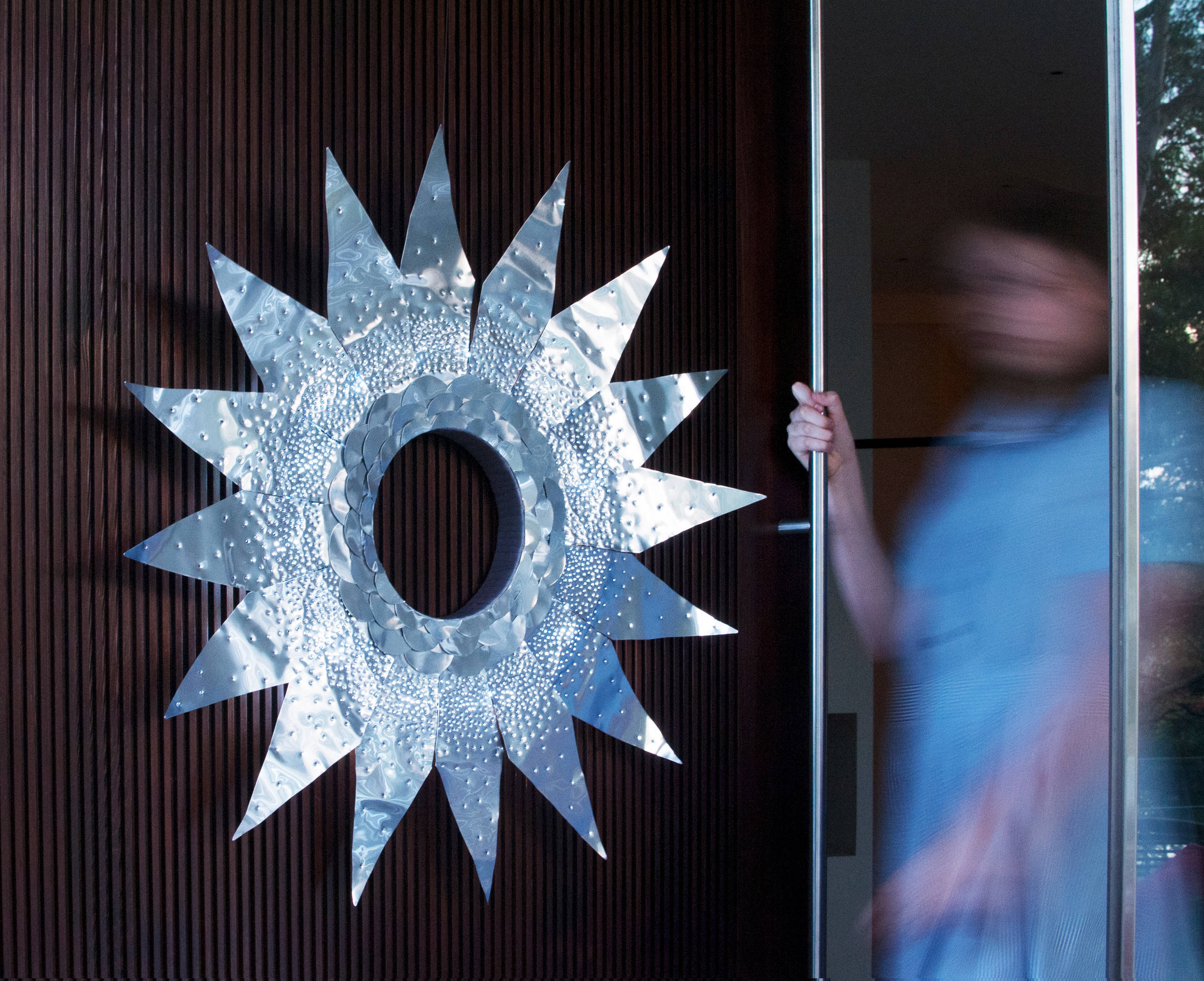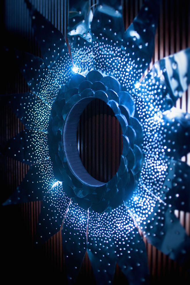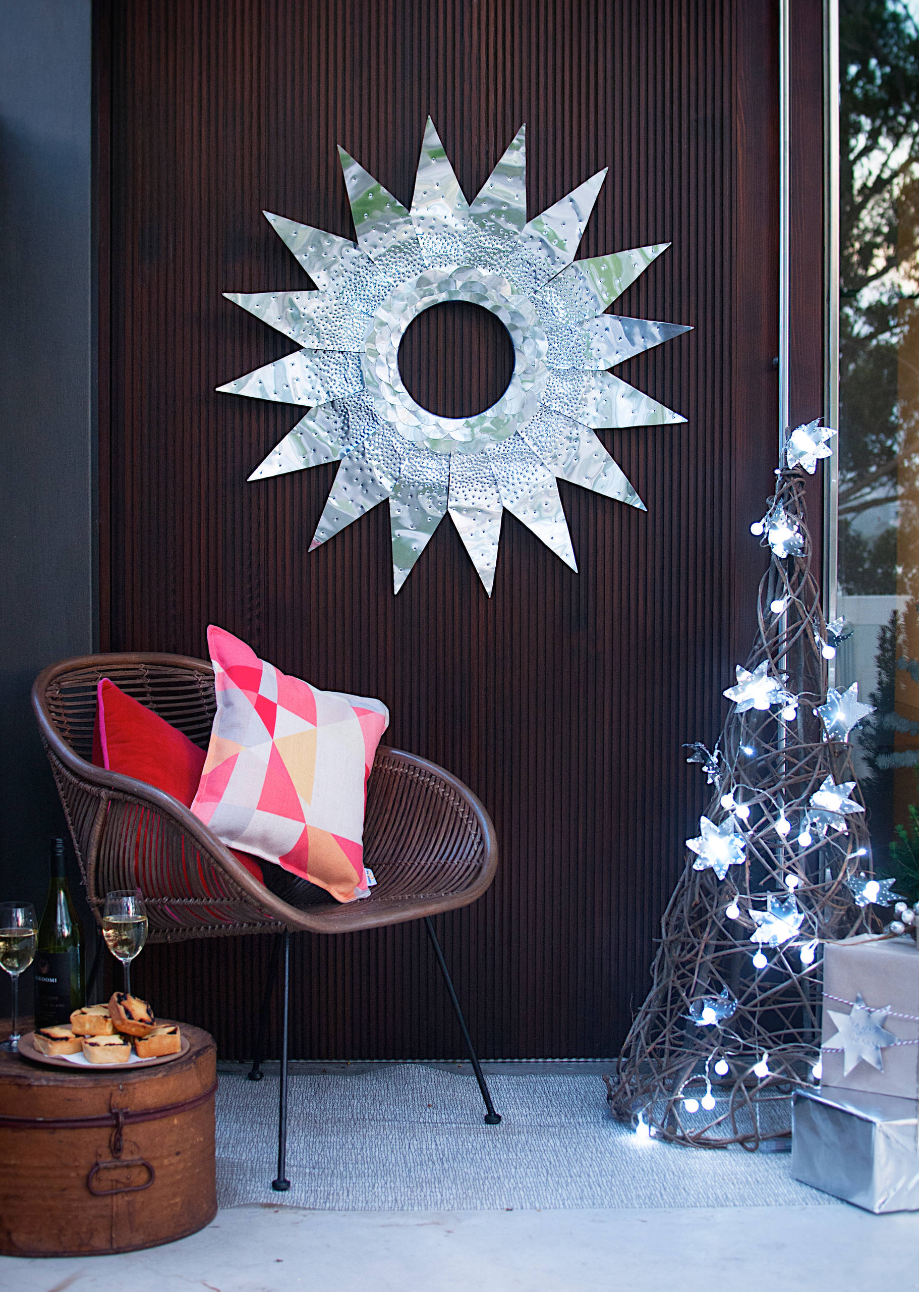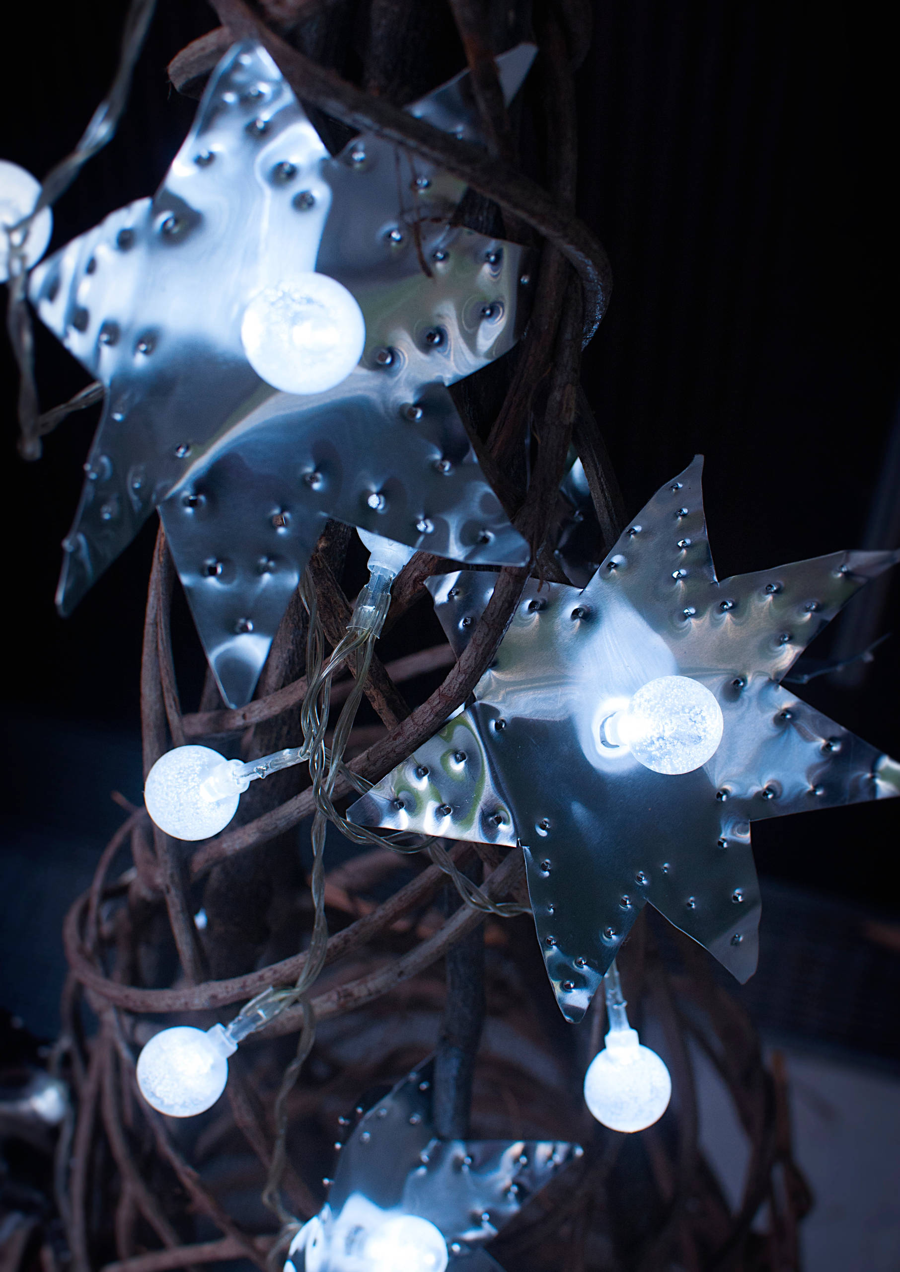 We also experimented with the aluminium sheeting by forming star shapes into flowers that encase Christmas lights, which also make pretty silver gift tags.