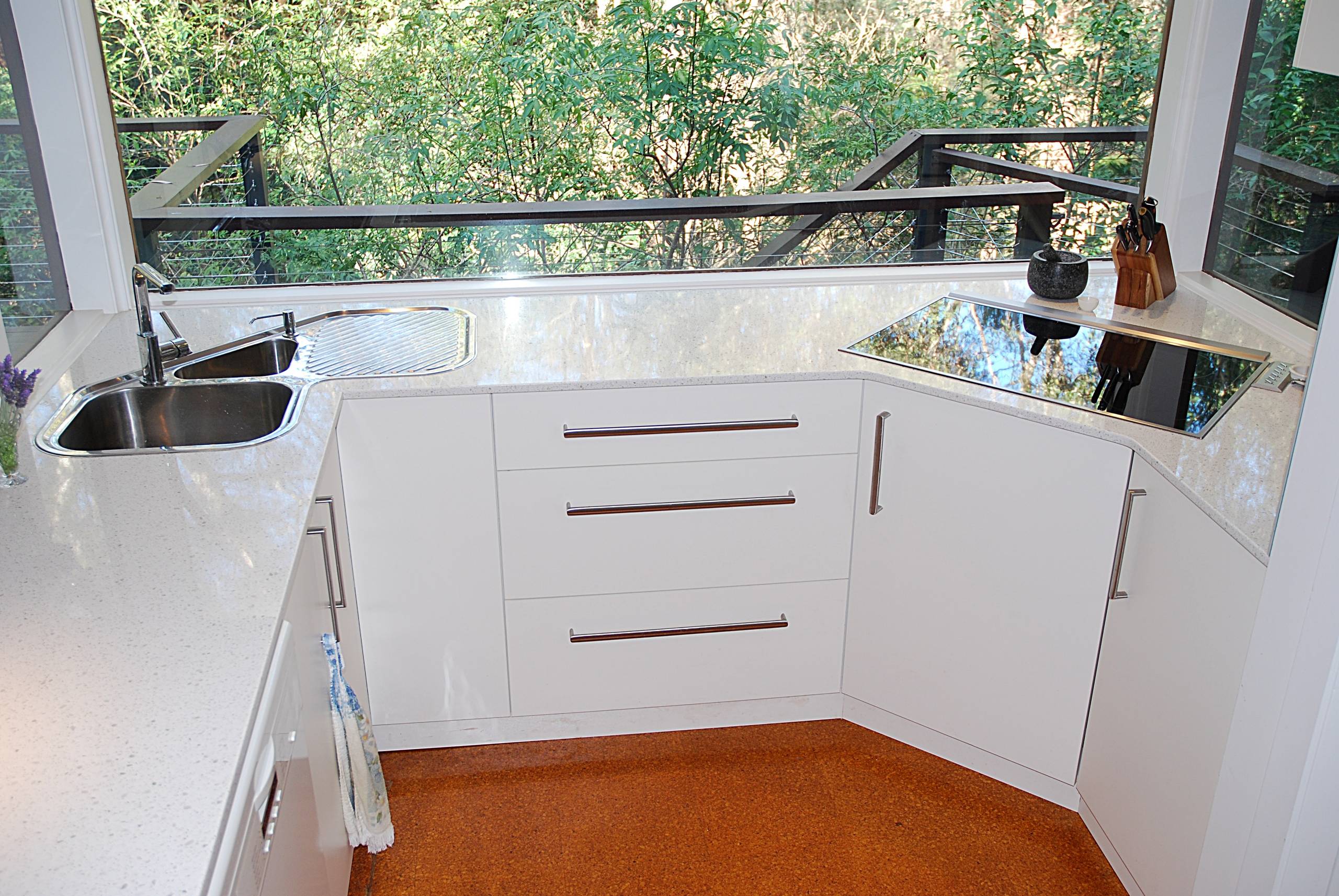 Positioning the sink in the corner frees up bench space on either side, and creates two work areas – one for the cook, the other for another family member wanting a cup of tea or a sandwich (or maybe even helping to prepare dinner).