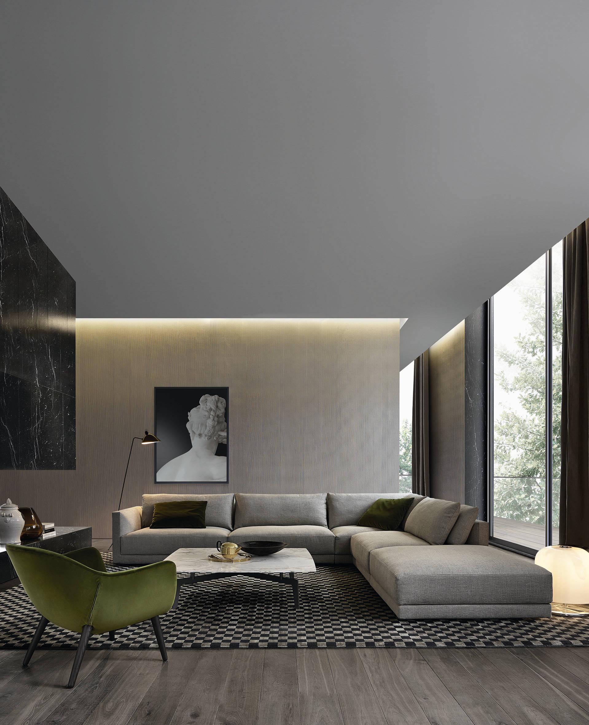 Linear strips can also help demarcate a functional zone in an open-plan room, creating a room within a room.