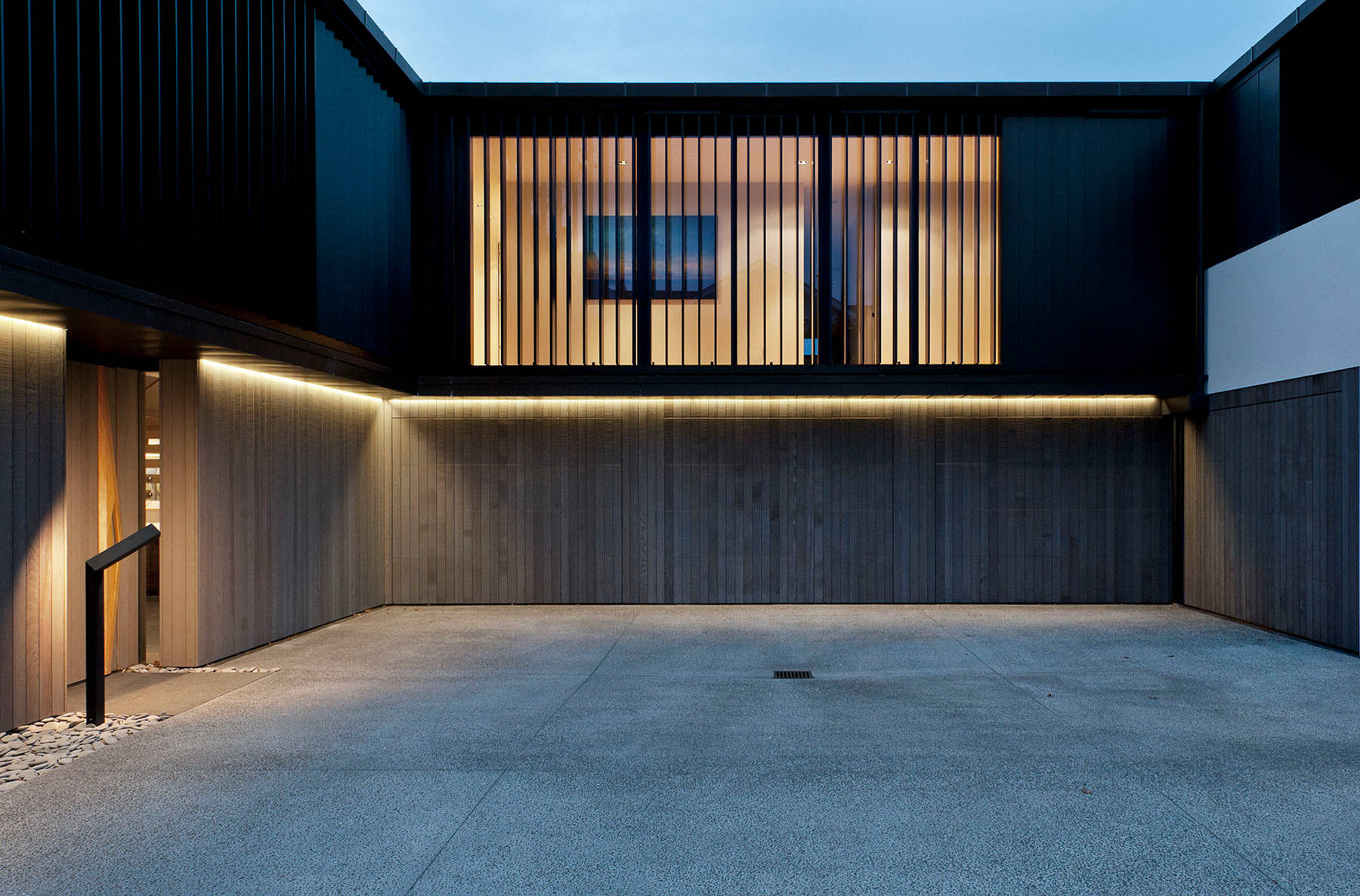 Outdoor lighting is available as a continuous strip of light that acts as general lighting, but also looks sophisticated as accent lighting by highlighting the contrast between the top and base of the feature wall.