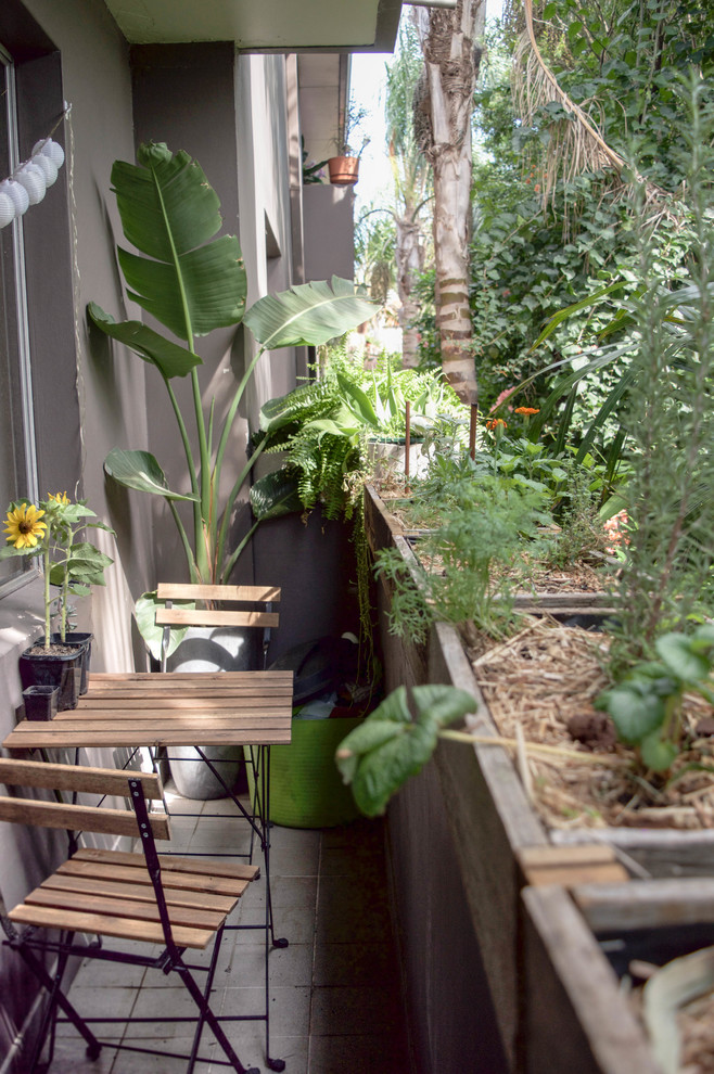 While the balcony may seem small, the duo make the most of the space. They also practise what they preach by growing as much as possible in the recycled timber boxes that were built to fit on the balustrade.