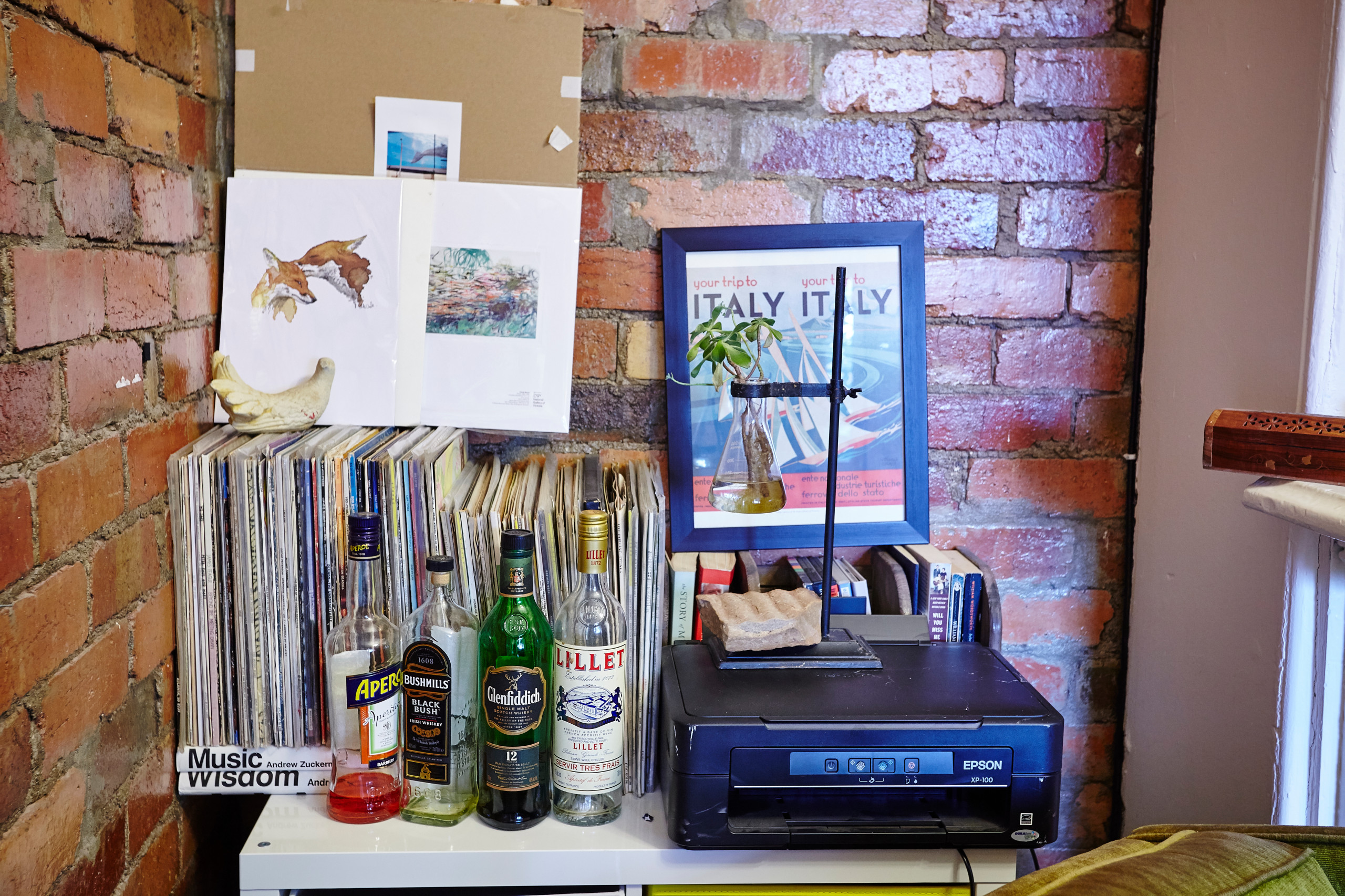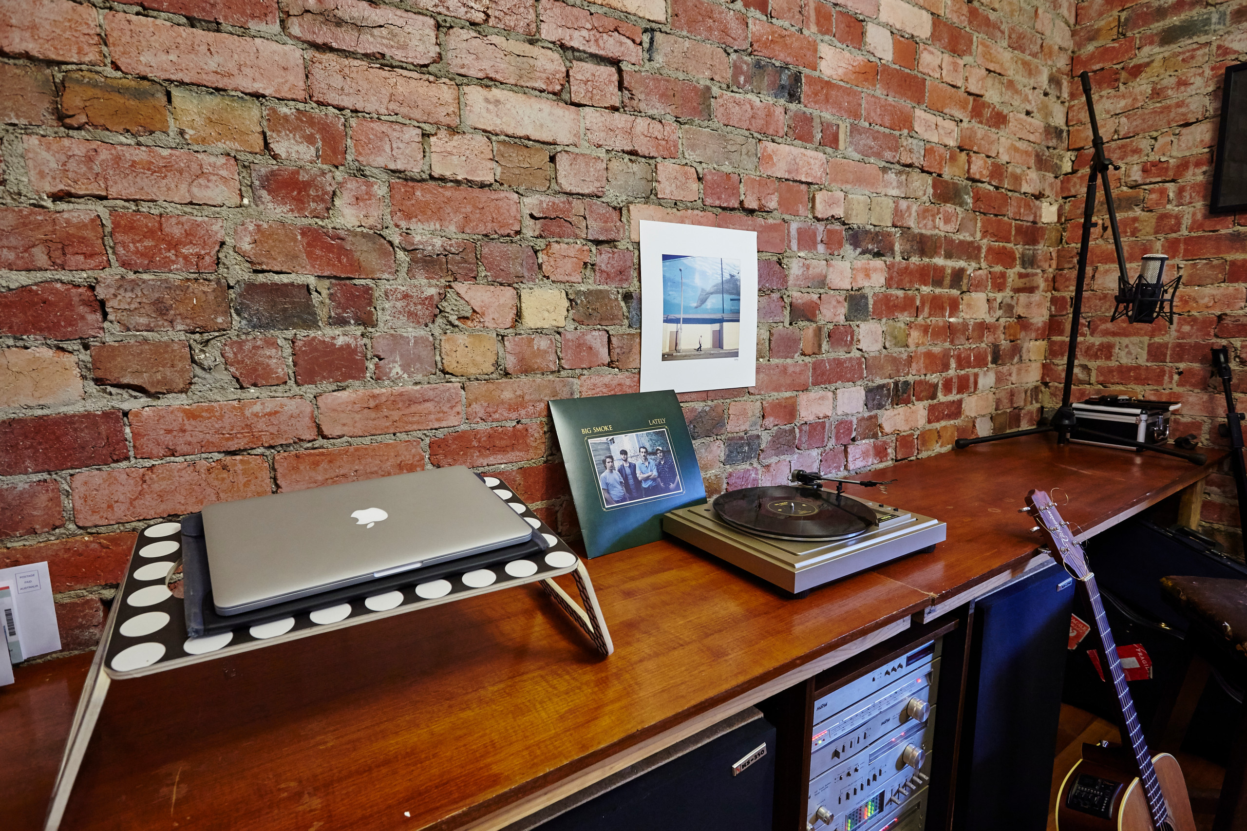 As Walters has made Parlour Gigs his own full-time gig, it was important to have a space where he felt comfortable. He enjoys standing at his desk to produce music and says he hates sitting down. Though most of his work is done in front of a computer, being able to move around and have music surrounding him keeps things balanced and fresh.