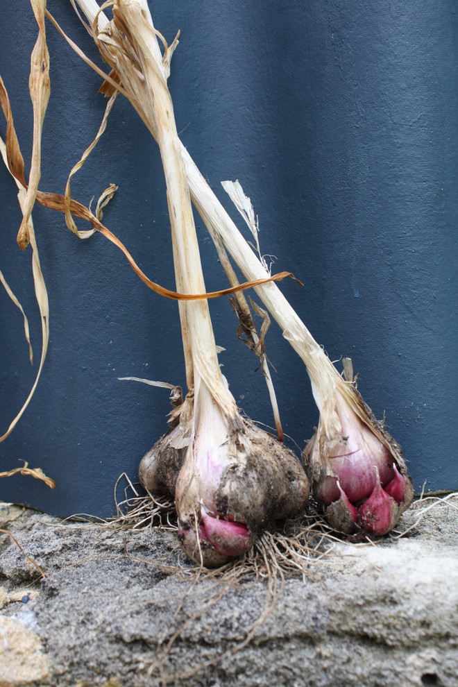 Garlic will grow just about anywhere. All you have to do to grow garlic is push large cloves into the ground with the pointy tip facing up about 6cm below the surface of the soil. While it takes about eight months to grow into a new bunch, it will have benefited your other vegetables in the meantime by helping to deter aphids and other bugs in the garden.