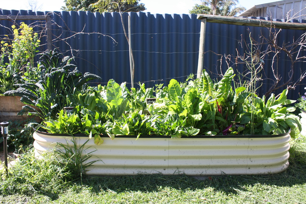 Raised beds or containers offer many advantages over planting in the ground. They are easy to maintain, more difficult for weeds, slugs and pets to get into and you can fill them with great-quality soil right from the start, rather than just trying to enrich poor-quality soil. You can build your own raised beds from sealed pine or cedar pieces or purchase some old jarrah railway sleepers to work as the frame.