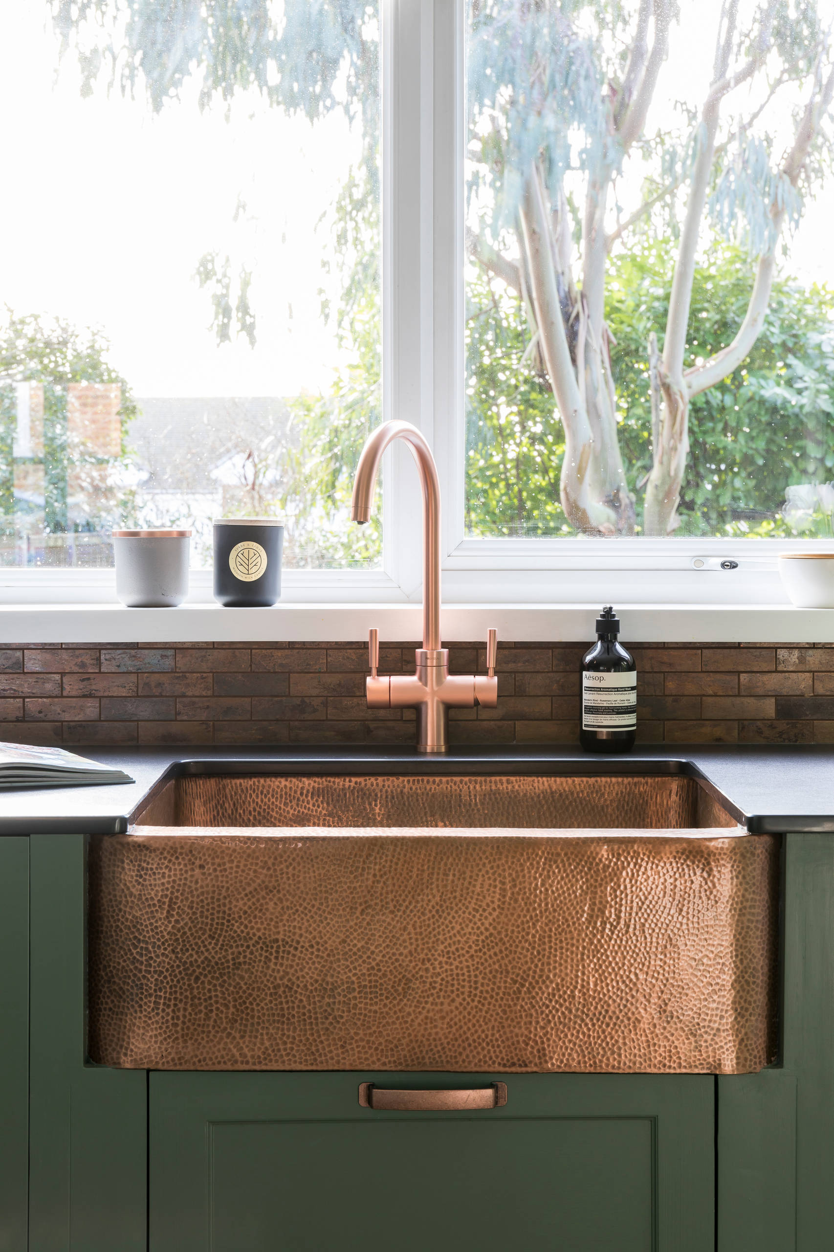 Copper is another stunning material sometimes used to manufacture farmhouse sinks. The copper can have a hammered finish and can also have a coloured patina applied when they are manufactured.