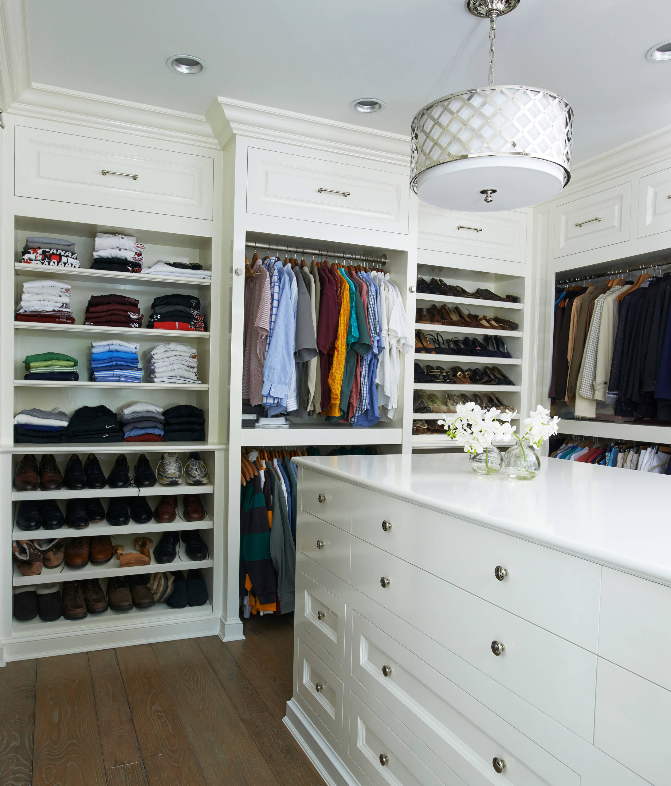 - You can have full-length mirrors and accessory storage for belts, ties, scarves etc. on the opposing wall, easily seen and accessed.