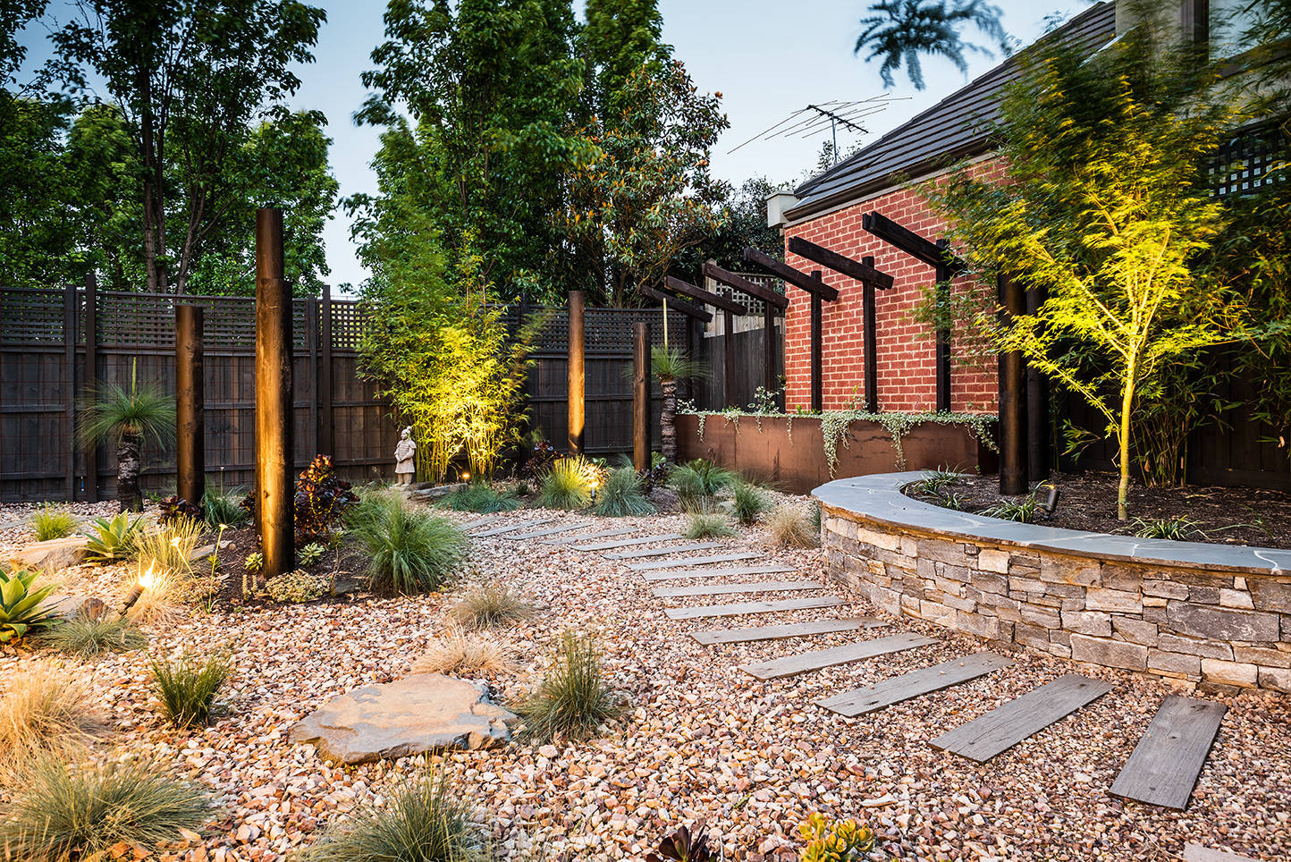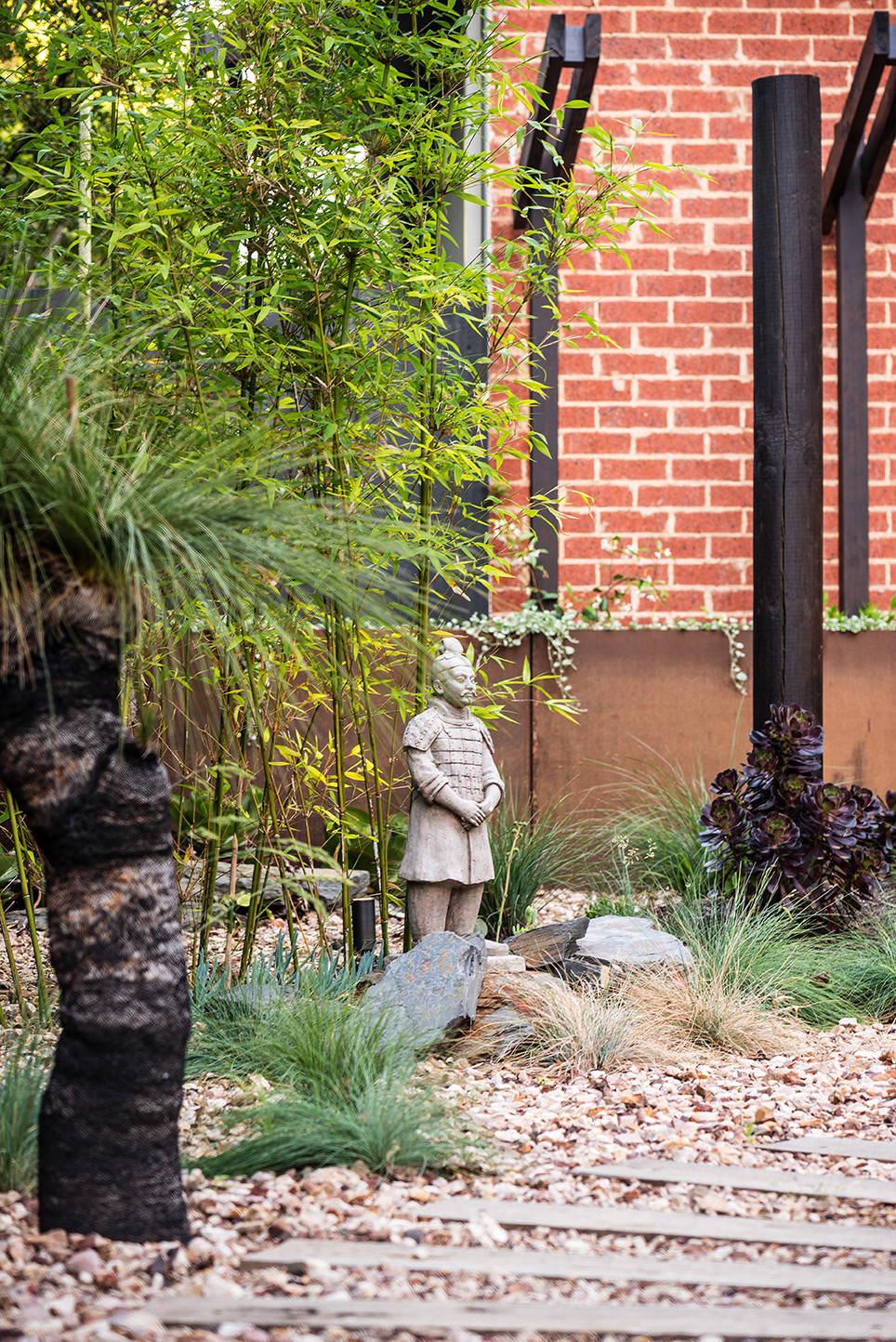 It was important for the plant palette to have a mixture of ground covers, creepers and different shaped plants to soften all of the hard materials, which brings a sense of balance.