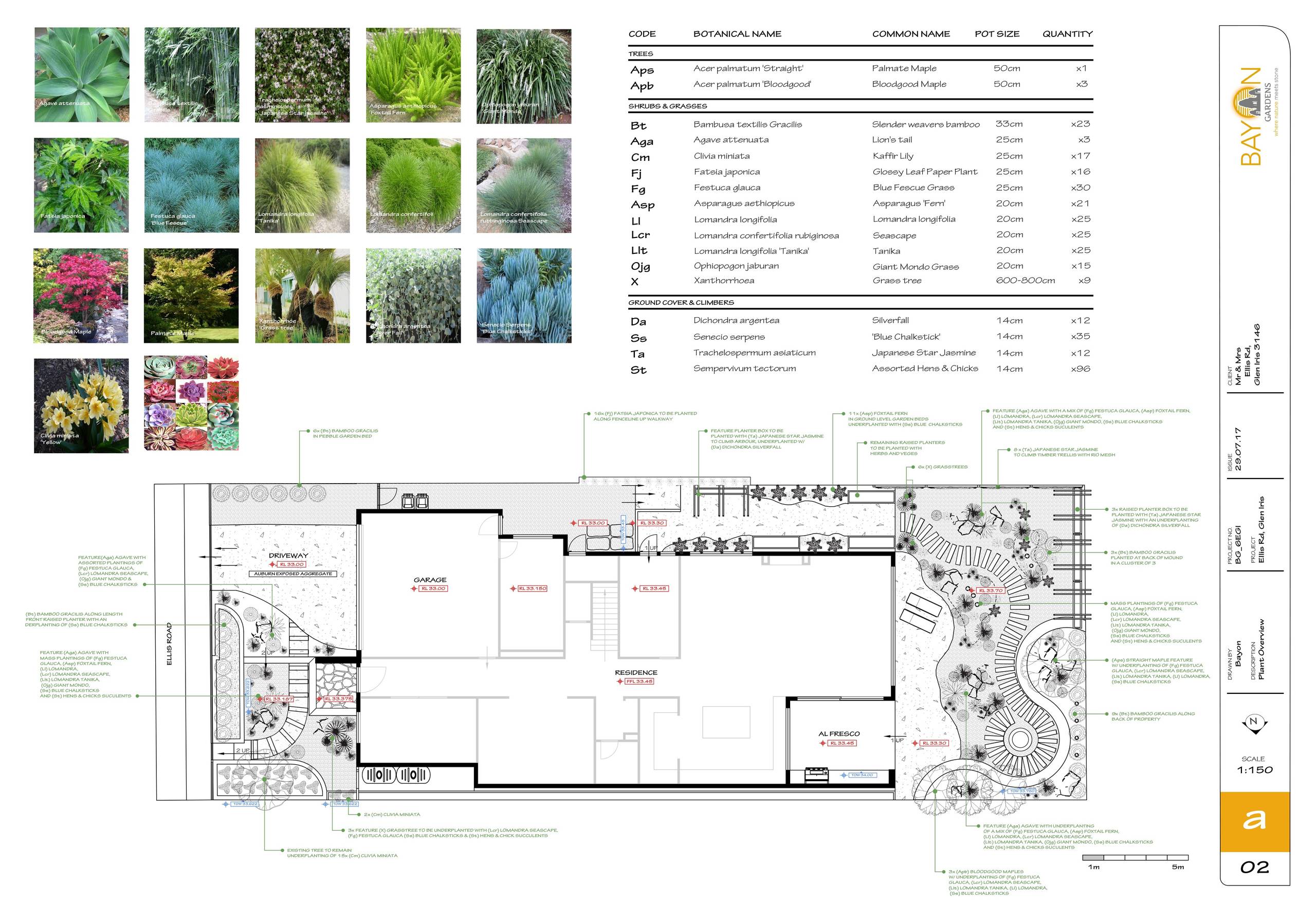 We chose a selection of native and oriental plants. The colour palette used was greens and red/purple tones.