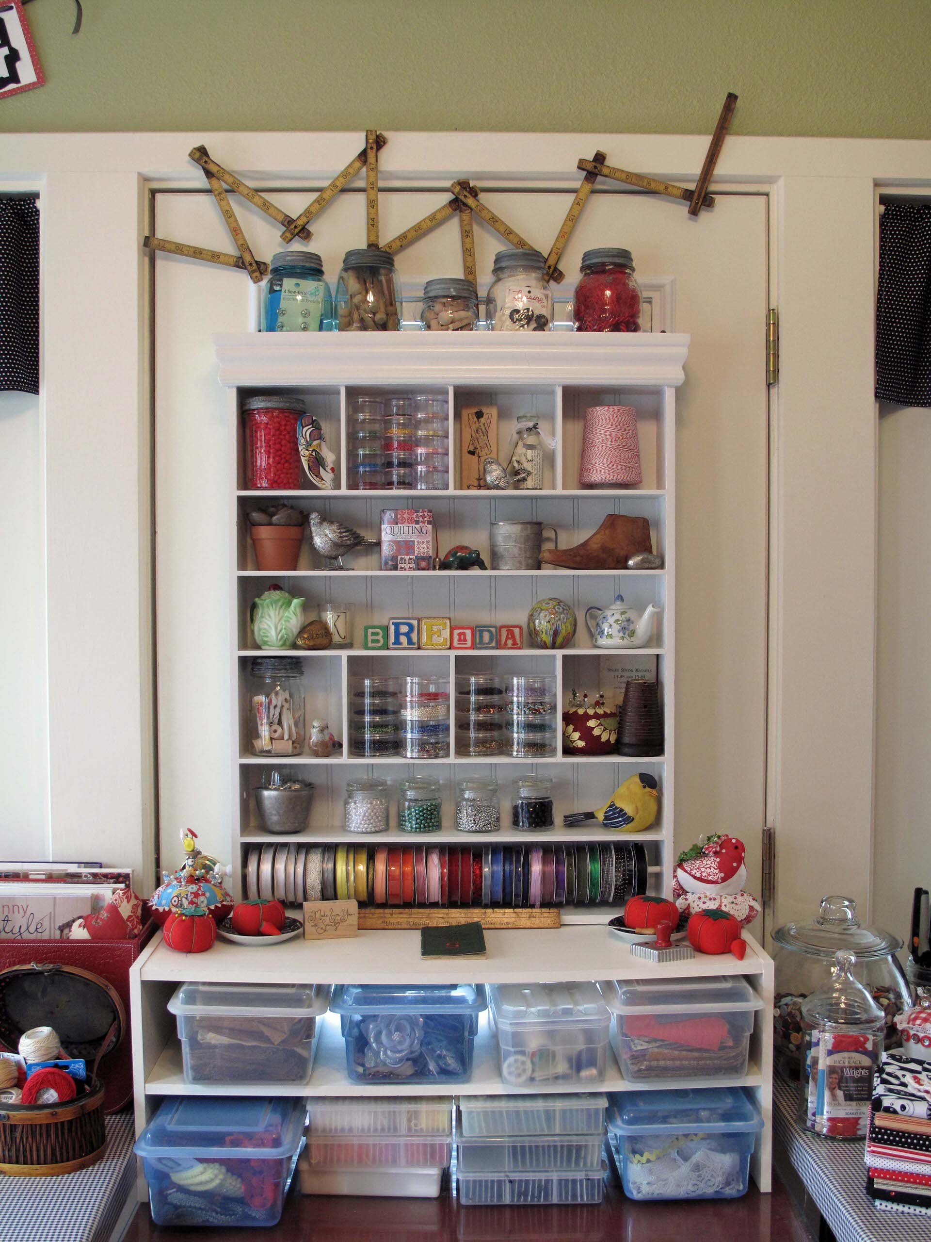Create a craft nook using small condiment jars that are ideal for storing beads and buttons. The clear glass also allows you to see exactly what bits and bobs you have inside.