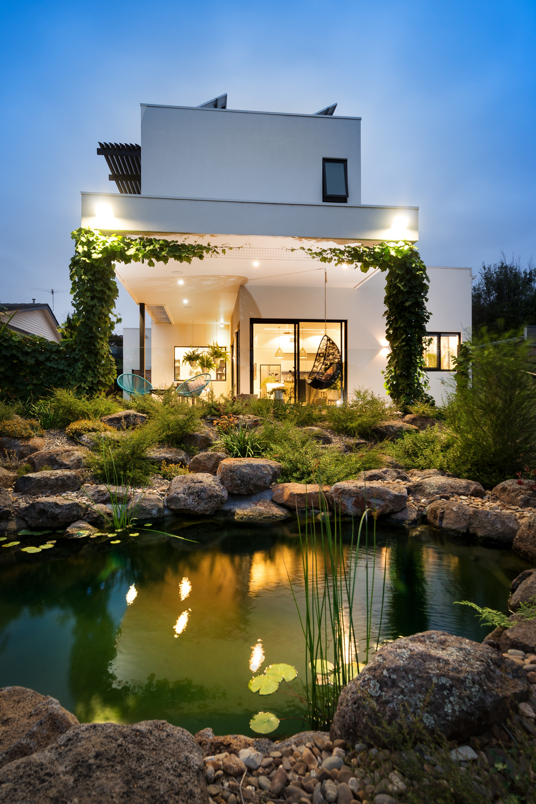 Her own office was designed to overlook a pond and waterfall, providing both natural light and ambient sound. “It’s nice to be able to look outside,” she says. “A lot of new homes will have the highlight windows, but you just get this cabin fever and an awful feeling in your body because you’re not looking outside. So that’s really important.”
